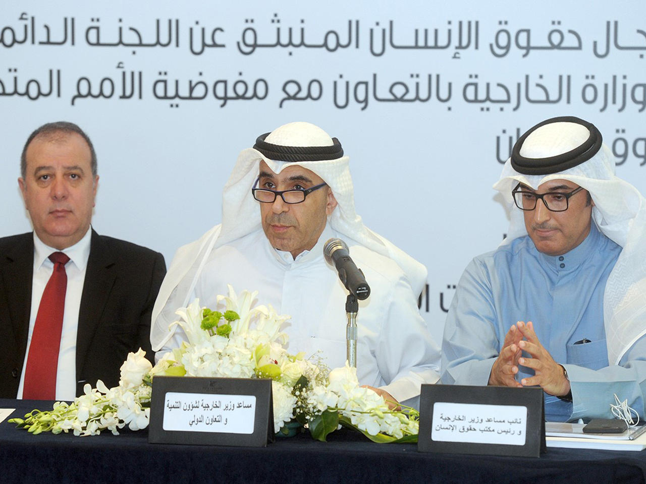 وفي نفس السياق، قال الصبيح إن الوزارة تعمل جاهدة على إبراز الامكانات والمكانة الكبيرة التي تتمتع بها دولة الكويت على المستويين الإقليمي والدولي فيما يتعلق بحقوق الإنسان. وأوضح أن ورشة العمل (خطة وطنية لتنفيذ التوصيات الصادرة عن الآليات الدولية لحقوق الإنسان) تأتي في اطار عمل اللجنة الدائمة لمتابعة تنفيذ الخطة الخمسية وبرنامج عمل الحكومة في وزارة الخارجية لتنفيذ المشاريع التنموية المهمة التي تتبناها الوزارة في مجال تعزيز دور وجهود دولة الكويت في مجال حقوق الإنسان.وذكر أن الورشة تهدف إلى وضع خطة وطنية لتنفيذ توصيات الدولة ذات الصلة بحقوق الإنسان «حتى نعكس مدى حرص الكويت في الالتزام بمتابعة كافة تلك التوصيات والتي تعد التزاما علينا تنفيذها».وأشاد الصبيح بمستوى التعاون القائم مع الآليات الدولية لحقوق الإنسان والمفوضية السامة لحقوق الإنسان مستذكراً الزيارة الناجحة التي قام بها مفوض الأمم المتحدة السامي لحقوق الإنسان الأمير زيد بن رعد إلى دولة الكويت في فبراير الماضي والتي تصب في اتجاه تطوير آفاق التعاون في المستقبل.وأعرب عن أمله في أن يستفيد الجميع من برنامج ورشة العمل هذا الذي سوف يكون عوناً في الاستعداد للاستحقاقات المقبلة على دولة الكويت أمام الآليات الدولية لحقوق الإنسان.بدوره، أعرب المتحدث بأسم المفوضية السامية لحقوق الإنسان محمد ابو حاجيه عن سعادته في أن يساهم المكتب بتعزيز مكانة حقوق الإنسان لدى الكويت من خلال العمل الذي تقوم به اللجنة الوطنية لإعداد التقارير والتوصيات التي التزمت بها دولة الكويت طوعاً أمام المجتمع الدولي.وأوضح حاجية في كلمة مماثلة خلال الافتتاح أن تنفيذ التوصيات الدولية التي انبثقت عن الاستعراض الدوري الشامل تعتبر الآلية الأحدث من حيث حماية حقوق الإنسان.وأشار إلى أن هذه الورشة ليست بمفهوم الورش التقليدية التي يقوم بها مكتب المفوضية السامية لأنها تأتي ضمن التعاون الوثيق الذي تعزز من خلاله العمل المشترك مع مكتب حقوق الإنسان طوال السنوات الماضية الذي كان تعبيراً عن الإرادة السياسية لدولة الكويت لتنفيذ التزاماتها لتحسين حالة حقوق الإنسان لكل مواطن ومقيم على أرض الكويت.ولفت إلى أن المكتب أعد برامج مشابهة في دول خليجية مجاورة حيث تبيّن أن العمل المشترك بين الآليات المتختلفة يُساهم في اعطاء الدول صورة أفضل عن التزامتها بهذا الخصوص.