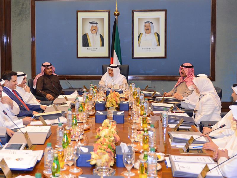 عقد مجلس الوزراء اجتماعه الأسبوعي بعد ظهر اليوم في قاعة مجلس الوزراء بقصر بيان برئاسة سمو الشيخ جابر المبارك الحمد الصباح رئيس مجلس الوزراء وبعد الاجتماع صرح وزير الدولة لشؤون مجلس الوزراء ووزير الإعلام بالوكالة الشيخ محمد عبد الله المبارك الصباح بما يلي : استهل مجلس الوزراء أعماله بالاطلاع على الرسالة التي تلقاها حضرة صاحب السمو الأمير حفظه الله ورعاه من فخامة الرئيس حسن روحاني رئيس الجمهورية الإسلامية الإيرانية والتي تعلقت بزيارة فخامته للبلاد مؤخرا.ثم اطلع مجلس الوزراء على الرسالة التي تلقاها حضرة صاحب السمو الأمير حفظه الله ورعاه من فخامة الرئيس فرانسوا هولاند رئيس الجمهورية الفرنسية والتي تضمنت تهنئة فخامته وتهاني الشعب الفرنسي بمناسبة العيد الوطني والتأكيد على حرص فخامته الشخصي على استمرارية الشراكة الاستراتيجية بين البلدين الصديقين الممتدة منذ ما يقارب الخمسين عاما والسعي لتعزيز أطر التعاون المشترك بينهما في مختلف المجالات والإشادة بدور دولة الكويت في أمن واستقرار المنطقة .هذا وقد أبن مجلس الوزراء المغفور له باذن الله تعالى الفريق محمد عبد العزيز البدر الذي انتقل إلى جوار ربه يوم الجمعة الماضي وفي هذا الصدد فان المجلس يستذكر بكل التقدير جهود الفقيد المخلصة وبصماته الوطنية في خدمة الوطن بمختلف المواقع والتضحيات الكبيرة التي قدمها للوطن العزيز ودوره المشهود في مقاومه الاحتلال العراقي البغيض منوها بما عرف عن الفقيد طيلة خدمته من التزام وانضباط جاد وحرص على تطبيق القانون دون تفرقة ولا سيما في مواجهة التعديات على أملاك الدولة ومظاهر مخالفة القانون سائلا المولى القدير أن يتغمد الفقيد بواسع رحمته ومغفرته ويسكنه فسيح جناته .