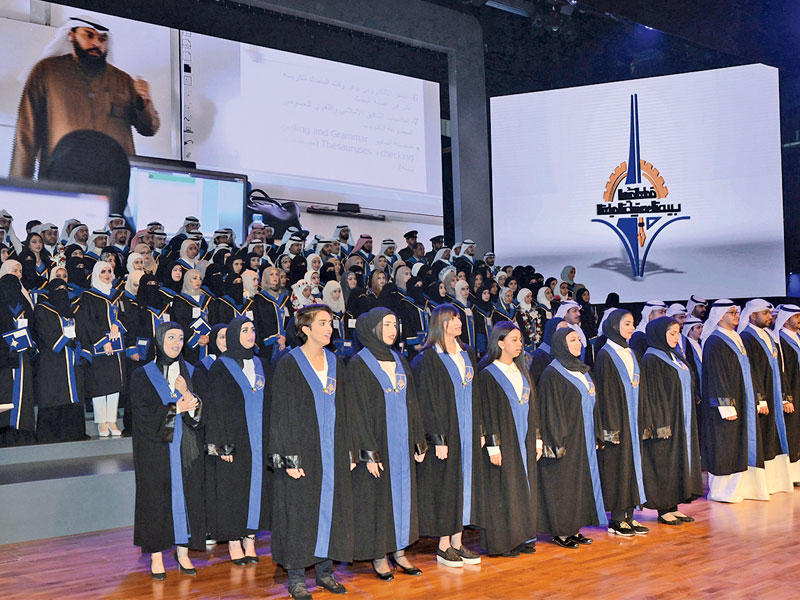 وأكد وزير التربية وزير التعليم العالي د. محمد الفارس أن الاحتفال بمرور أحد عشر عاما على تولي حضرة صاحب السمو أمير البلاد الشيخ صباح الأحمد مقاليد الحكم في البلاد التي تتواصل فيها عزة وأمجاد الكويت، تزامن مع مناسبتي العيد الوطني وعيد التحرير، مشيرا إلى أن حفل تكريم خريجي «التطبيقي» هو امتداد لمسيرة تكريم بدأت بجامعة الكويت منذ أيام قليلة مضت، وتستكمل بتخريج سواعد فتية جديدة من ابناء الهيئة العامة للتعليم التطبيقي والتدريب، تلك المكرمة الأميرية السامية التي يعتز بها أبناء الكويت وتترجم حب القائد لأبنائه، وحرصه على تكريم المتميزين منهم.وأوضح الفارس أن تشريف سمو ولي العهد الشيخ نواف الأحمد لحفل تكريم أبناء التطبيقي، هو تجلٍّ لصور التآخي والتلاحم بين أبناء الشعب الكويتي في ابهي مظاهرها.وأشار إلى ان نطق صاحب السمو ذكر أن «التنمية المستدامة هي الهدف الأول والغاية الأسمى في الحاضر والمستقبل، وهي التحدي الدائم الذي يقرر مصير البلد والمجتمع»، قائلاً «إننا نعاهدكم يا صاحب السمو بأننا نمضى معكم في هذا التحدي، ونعاهدكم على خلق جيل واعٍ مؤمن بتنفيذ الخطط والاستراتيجيات التي من شأنها ان تعمل على تنفيذ اهداف التنمية المستدامة من اجل اعلاء كلمة الوطن».وذكر الفارس أن «التعليم العالي رسالةٌ للحرية الفكرية، وموطن للإبداع المعرفي في ركب الحضارة الإنسانية، وانطلاقا من هذا المفهوم بلورت الهيئة العامة للتعليم التطبيقي والتدريب استراتيجياتها التعليمية بقطاعيها التطبيقي والتدريب، وركزت خلالها على أبرز العناصر التي تشكل مؤسسات التعليم العالي المرموقة».وبين أن عملية التنمية تعتمد على جانبين أساسيين، هما العنصر البشري والعنصر المادي، لافتا الى ان «العنصر البشري يعد هو الأساس في التنمية، وهو المسؤول عن تحويل الموارد المختلفة من قوة إلى فعل، ومن إمكانية إلى وجود، بينما العنصر البشري يعتبر القوة المحركة للنمو الاقتصادي، وذلك من خلال تطوير التعليم الذي بدوره يقود الاقتصاد نحو نمو متصاعد وتنمية متسارعة».وأعلن الفارس الانتهاء، أخيرا، من الانشاءات الجديدة لمباني الهيئة بطاقة استيعابية إضافية لخمسة عشر ألف طالب وطالبة بمختبراتها وورشها ومعداتها ومكتباتها، إضافة الى انه قد تم افتتاح المجمع الرياضي التكنولوجي على ارض الهيئة في منطقة الشويخ، وبذلك يتحقق حلم الشباب الرياضي لمؤسسات التعليم العالي من حيث اقامة جميع الألعاب والبطولات الأولمبية المحلية والدولية على هذه المنشآت.شريحة الشباب