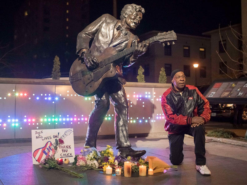 توفي عازف الغيتار والمغني الأميركي تشاك بيري، أحد مؤسسي الروك آند رول امس الاول، عن 90 عاما، بعدما احدث ثورة في عالم الموسيقى. وعثر المسعفون على بيري من دون حراك في منزله قرب سانت لويس في ميزوري (وسط)، حيث أمضى جزءا كبيرا من حياته. ولم تعرف أسباب الوفاة فورا، فيما طلبت العائلة احترام خصوصيتها خلال فترة الحداد.وقالت شرطة المنطقة، عبر صفحتها على "فيسبوك"، "بحزن شديد تعلن شرطة سانت تشارلز وفاة الاسطورة تشاك بيري".