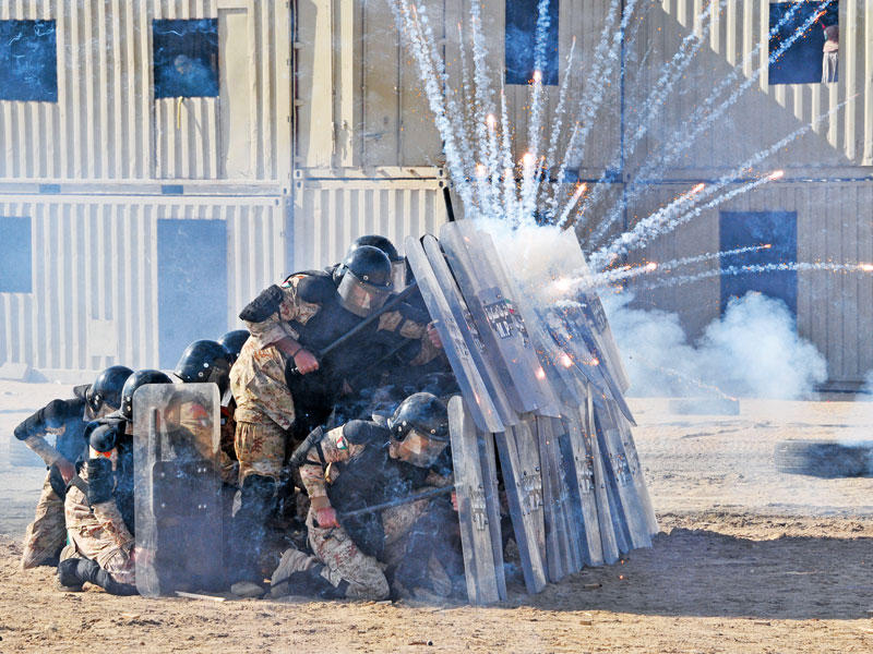 إلى ذلك، أكد العميد ركن يوسف الفلاسي من القيادة العامة بدولة الإمارات العربية المتحدة أن تمرين حسم العقبان يهدف لرفع مستوى القدرات والخبرات العسكرية لدول مجلس التعاون، وهو عبارة عن جهود تم تجميعها من خبرات ودروس مستفادة من خلال السنوات الماضية التي عقد فيها التمرين مرورا بدول مجلس التعاون.وبين الفلاسي أن «هذا التمرين يعتبر نادرا لأنه يشهد مشاركة دول مجلس التعاون فقط مع الحليف الصديق الولايات المتحدة، وخلاله سنبرز جميع الأدوار للهيئات الحكومية والوزارات من مؤسسات عسكرية ومدنية».وتمنى نجاح التمرين وزيادة خبرات كل المشاركين بنهايته، لافتا إلى أن رسالة التمرين واضحة منذ البداية وهي توحيد جميع الجهود للوقوف ضد أي عدوان.عبدالله: دعم العمليات العسكرية والأمنية
