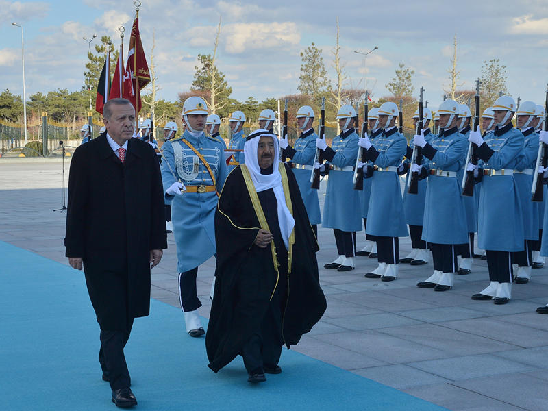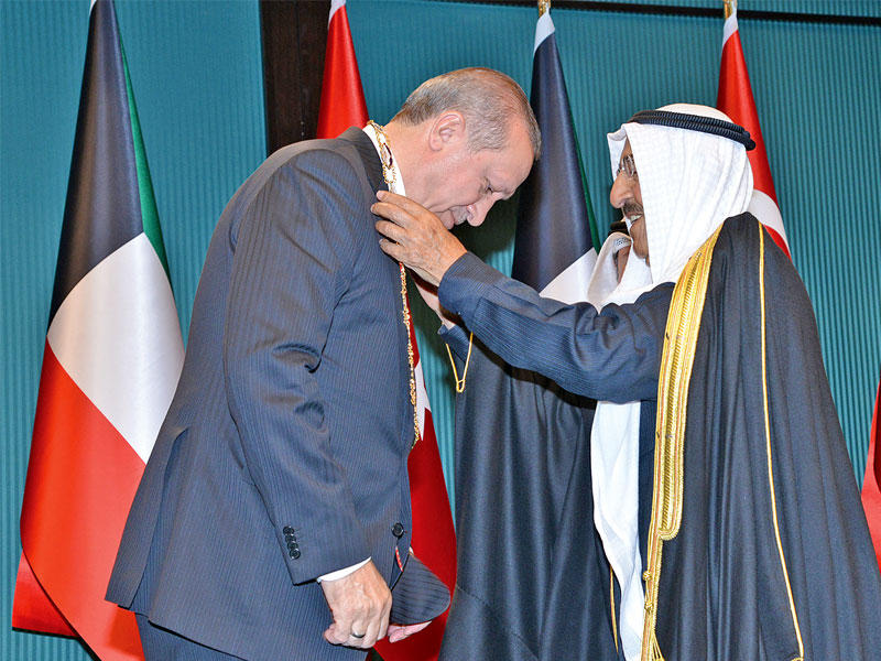 توج اليوم الثاني للزيارة الرسمية لصاحب السمو امير البلاد الشيخ صباح الأحمد لتركيا بتبادل الأوسمة بين سموه والرئيس التركي رجب طيب إردوغان، بعد مباحثات رسمية أفضت إلى توقيع عدد من الاتفاقيات. وقد أقيمت أمس، في القصر الرئاسي بالعاصمة أنقرة، مراسم الاستقبال الرسمية لصاحب السمو، وكان على رأس مستقبليه الرئيس إردوغان، حيث تم عزف السلام الوطني لكلا البلدين، وإطلاق المدفعية 21 طلقة ترحيباً بسموه، ثم قام سموه باستعراض حرس الشرف، بعدها تفضل سموه بمصافحة كبار المسؤولين في الحكومة التركية، كما قام الرئيس إردوغان بمصافحة أعضاء الوفد الرسمي المرافق لسمو الأمير.بعد ذلك عُقِدت المباحثات الرسمية بين الجانبين، حيث ترأس صاحب السمو الجانب الكويتي، بينما ترأس إردوغان الجانب التركي، وتم خلالها استعراض العلاقات التاريخية الراسخة بين البلدين، وسبل تطوير وتنمية الشراكة في كل الصعد، بما يخدم المصالح المشتركة للبلدين والشعبين الصديقين، والسعي نحو المزيد من التعاون في مختلف المجالات لتوسعة اطر العمل المشترك، كما تناولت المباحثات أبرز القضايا ذات الاهتمام المشترك وآخر المستجدات على الساحتين الإقليمية والدولية وتبادل وجهات النظر بشأنها.وساد المباحثات جو ودي عكس روح التفاهم والصداقة التي تتميز بها العلاقات الطيبة بين قيادتي البلدين، تمثيلاً لرغبة الجانبين في دعم التعاون الثنائي في كل المجالات وتطويره في مختلف الميادين.