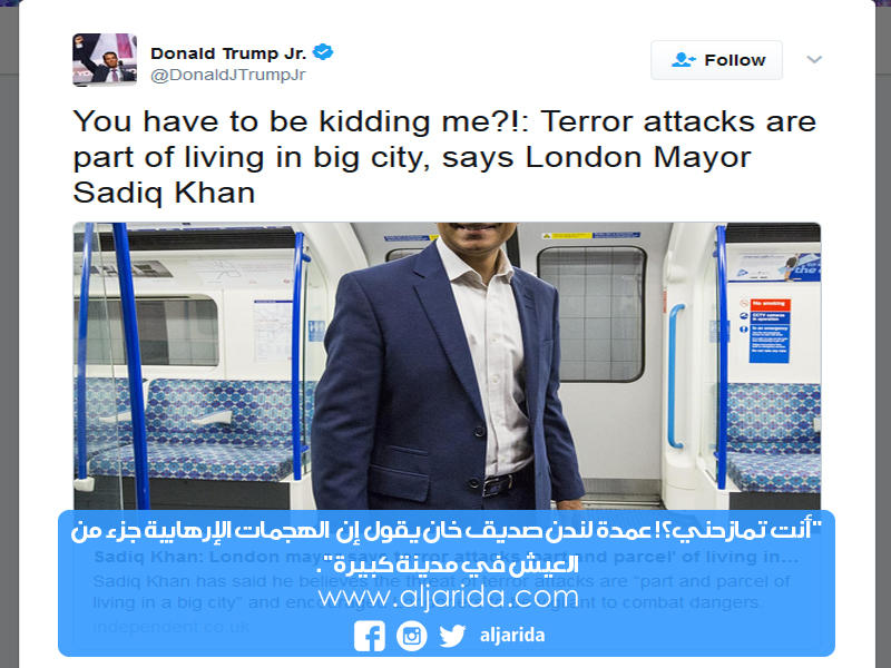 هجوم على نجل ترامب لإنتقاده عمدة لندن صادق خان: هل هذا مفيد ؟