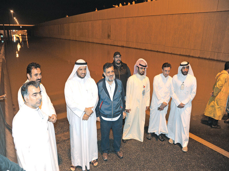 وفرض المشهد الميداني تداعياته على الجهات المعنية، فأعلن وزير الأشغال العامة عبدالرحمن المطوع ان "الوضع بعد الأمطار (امس الاول) وغرق الشوارع لا يمكن السكوت عنه، وسأفتح تحقيقا في ذلك، وسنحاسب المسؤول أياً كان".وقال المطوع، في تصريح أمس، إنه سيتم تشكيل لجنة تحقيق محايدة من جهات حكومية مختلفة، لدراسة أسباب تجمع الأمطار الغزيرة التي شهدتها البلاد في بعض المناطق وكشف المقصرين والمتسببين.وأشار إلى أنه عقد اجتماعا طارئا امس مع مسؤولي الوزارة، لبحث اسباب هذه المشكلة، مضيفا انه سيتم تشكيل لجنة تحقيق محايدة من جهات عدة، منها المؤسسة العامة للرعاية السكنية ووزارة الكهرباء والماء وجامعة الكويت ووزارة الأشغال، لدراسة أسباب تجمع مياه الأمطار وكشف المتسببين فيها. واضاف انه ستتم إحالة المتسببين والمقصرين في المشكلة، سواء من المقاولين أو العاملين في وزارة الاشغال، إلى النيابة، مبينا ان اللجنة كلفت برفع تقريرها خلال مدة أقصاها أسبوعان.نفق الصباحية