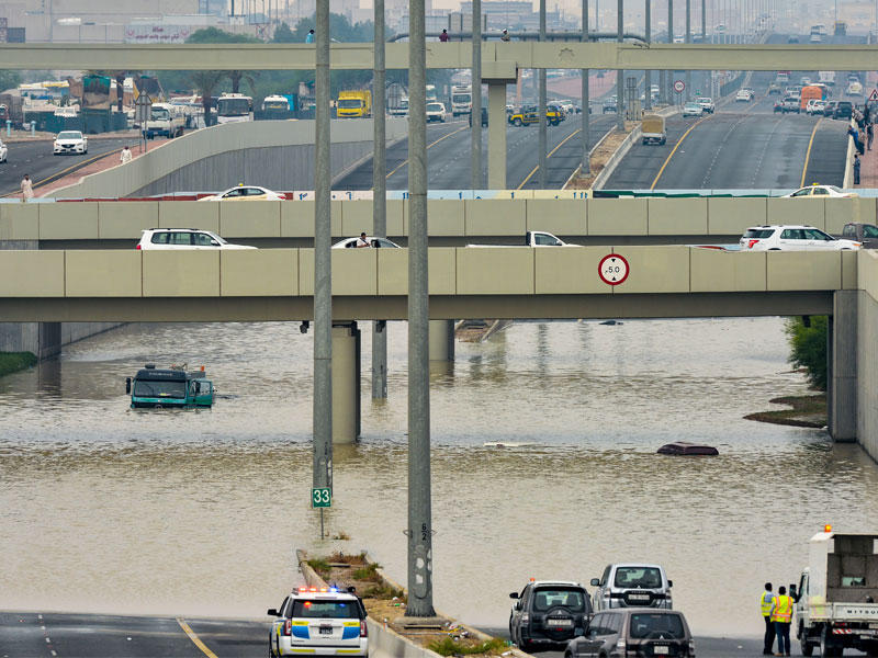 ولفت التقرير إلى أن نسبة الأمطار كانت قياسية، في حين صممت شبكة تصريف الأمطار على مستوى الدولة لاستيعاب نحو 20 ملم للطرق الداخلية و27 للسريعة، إضافة إلى حالة المد البحري التي عاقت سرعة التصريف.