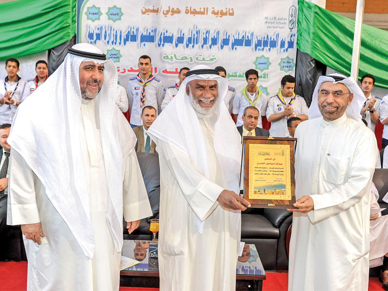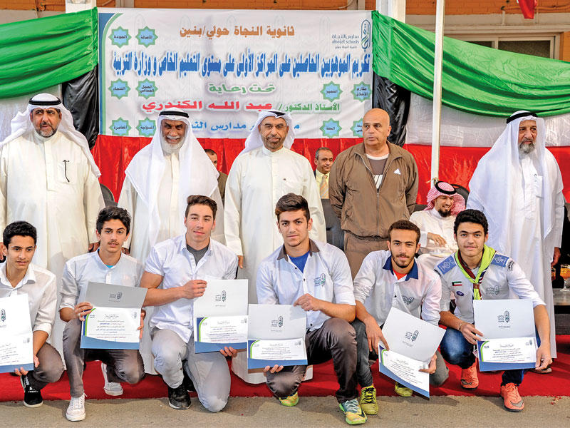 أقامت مدرسة النجاة الثانوية في حولي حفل تكريم لطلبتها الموهوبين في حفظ القرآن الكريم وتلاوته، والمتميزين بالأنشطة التربوية، والاختراعات العلمية، والألعاب الرياضية والمخيمات الكشفية على مستوى وزارة التربية وإدارة التعليم الخاص، وذلك برعاية وحضور المدير العام لمدارس النجاة د. عبدالله الكندري.وخلال الحفل، كرّم الكندري الطالب يوسف العنزي، الفائز بالمركز الأول على مستوى الكويت في أولمبياد الفيزياء والمرشح لتمثيل الكويت خليجياً في المسابقة التي ستقام في السعودية.