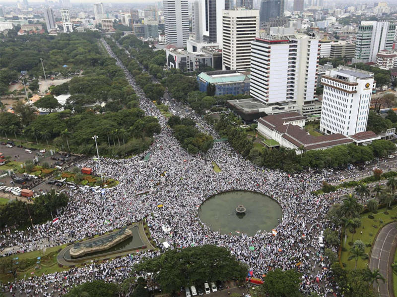 آلاف الإسلاميين يتظاهرون ضد حاكم «جاكرتا» المسيحي.. بتهمة «إزدراء الإسلام»