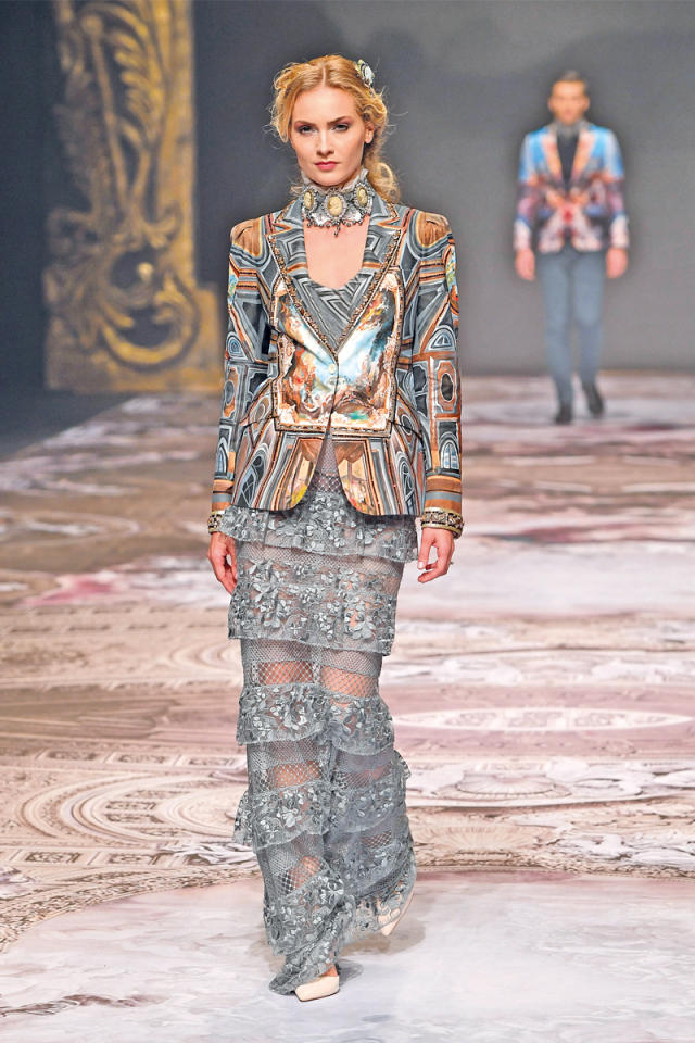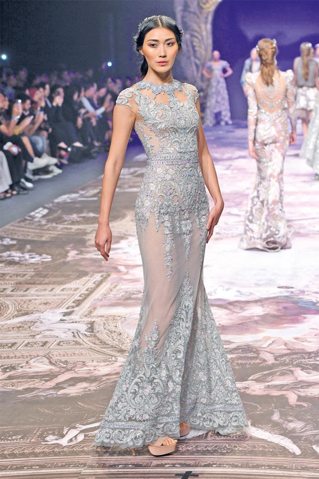 كعادته دوماً قدم مصمم الأزياء الفلبيني العالمي مايكل سينكو Michael Cinco عرض أزياء باهراً ضمن فعاليات الموضة «فاشن فورورد- دبي»، فجاءت فساتينه بقصات ملوكية طغت عليها الألوان الحالمة والأقمشة المطرزة بأناقة لافتة وراقية.