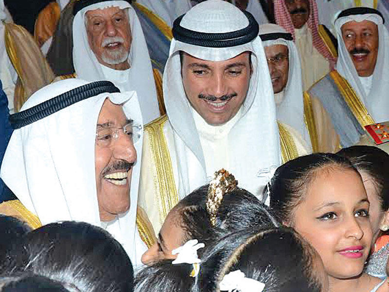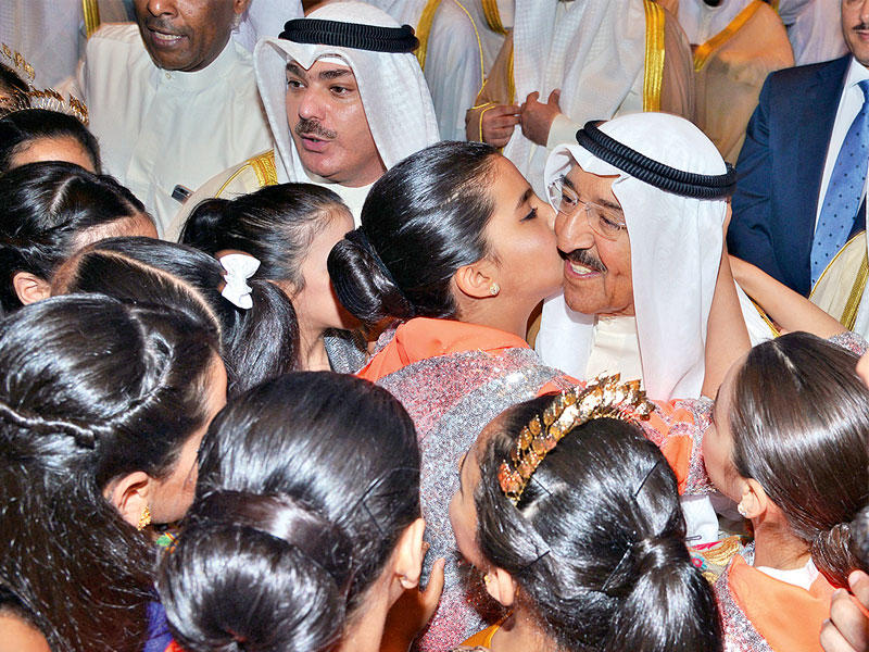 صاحب السمو محاطا بالأطفال المشاركين في أوبريت الكويت ثم الكويت