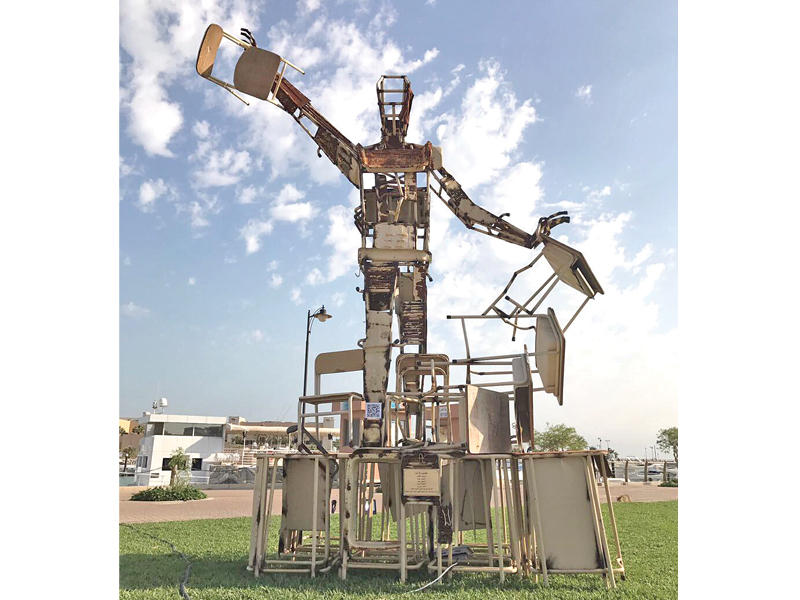 المعرض يضم 20 عملاً فنياً من الأثاث المدرسي التالف
