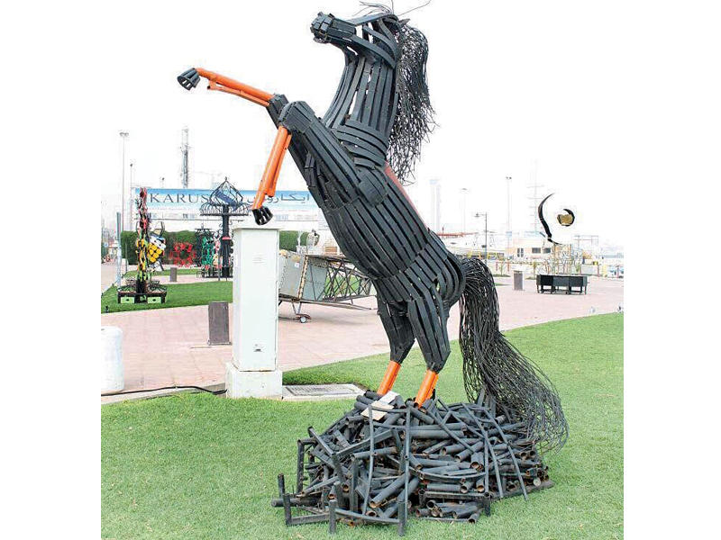 وأضاف العوض أنه تم عرض فكرة التدوير على المدير العام منصور الظفيري، "ورحب بهذه الفكرة وآمن بالمشروع، وقرر أن يعطينا هذا الأثاث التالف لكي يكون مصدرا للعمل والفعالية".ولفت إلى أن الهدف من هذه الفعالية هو نشر توعية مهمة جدا، وهي استغلال كل ما هو تالف وإعادة تدوير المستهلك، "وكان حجم الأثاث التالف كبيرا لذلك أطلقنا على الفعالية ميجا ريساكل، وصنعنا أنصبة تذكارية تنتشر في وطننا الحبيب الكويت، والذي يفتقد هذه الأنصبة في الدوارات والميادين، وفي الأماكن العامة المهمة".أما عن نوعية الأعمال التي عرضت فقال العوض إنها متنوعة، وترك كل مجموعة من المعلمين بقيادة الموجه المختص لتختار الموضوع الذي تراه مناسبا من هذا الأثاث، فمنهم من أخذ التراث مثل ألبوم البحري، والمبخر، أما المجموعات الأخرى فأخذت أعمالا تجريدية لها جانب تجريدي متعلق بالحركة التشكيلية، ومنهم من أخذ جانبا فنيا عاما مثل الحصان.