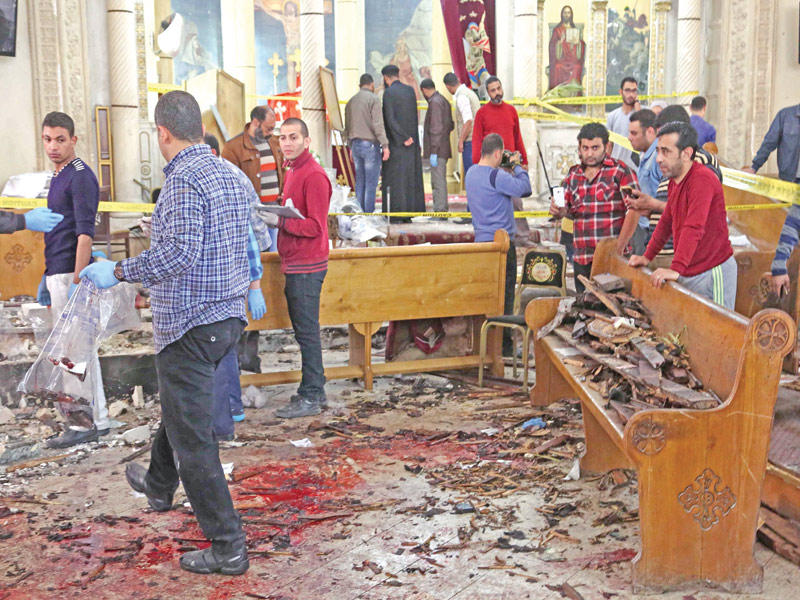 • انتحاري ينجح في الوصول إلى المقاعد الأولى لكنيسة مار جرجس بطنطا ويقتل 30 شخصاً