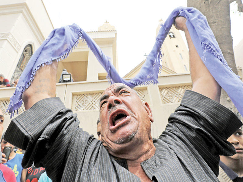 أعلنت مصر الحداد ثلاثة أيام على ضحايا هجومين انتحاريين ضربا كنيستين في طنطا والإسكندرية، أثناء قداس «أحد السعف»، صباح أمس، وأسفرا عن مقتل 46 وإصابة أكثر من مئة، وفي وقت لم يصب بابا الأقباط تواضروس الثاني الذي تصادف وجوده بكنيسة الإسكندرية بأذى ونقل إلى مكان آمن تبنى تنظيم «داعش» المسؤولية عن الهجومين.
