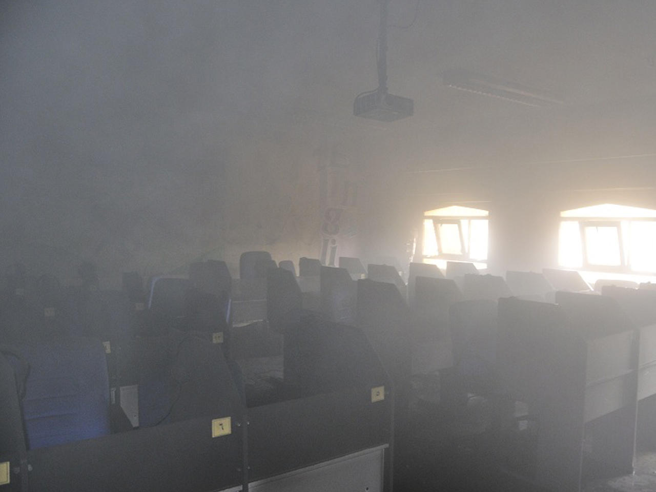 وأضافت الإدارة بأنه تبيّن أن الحريق في إحدى الفصول التي تحتوي على الكمبيوترات فشرع رجال الإطفاء في مكافحة الحريق واخماده.
