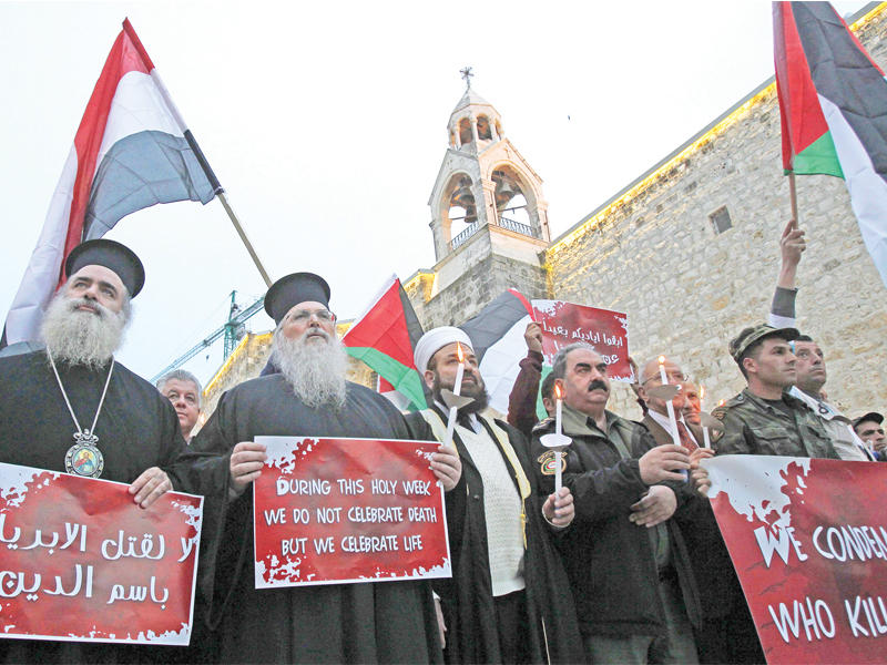 في الأثناء، وعلى الرغم من الاستنفار الأمني في مدينة طنطا التابعة لمحافظة الغربية، التي شهدت تفجير كنيسة «مار جرجس» الأحد الماضي، قال مصدر أمني مسؤول إن القوات تمكنت من اكتشاف عبوة ناسفة زرعها مجهولون، أمس، بجوار مشفى «سرطان الأطفال»، القريب من نادي ضباط الشرطة، ومشفى الهلال الأحمر، وأشار المصدر لـ «الجريدة» إلى أنه تم الدفع بسيارات الإسعاف والحماية المدنية، واستخدم خبراء المفرقعات أحدث الوسائل، حتى تمكنوا من تفكيك الناسفة.إلى ذلك، وصلت التحريات الأولية إلى تحديد هوية الانتحاري منفذ تفجير الكنيسة المرقسية في الإسكندرية، وأنه من المنتظر الإعلان عن هويته خلال ساعات، كما قام المعمل الجنائي بمحاولة تجميع الأشلاء لمنفذ هجوم كنيسة مار جرجس طنطا، لتحديد هويته من خلال تجميع الوجه، على غرار ما تم في الكنيسة البطرسية بالعباسية قبل أربعة أشهر.في غضون ذلك، وبينما وافقت الحكومة على معاملة ضحايا الحادثين الإرهابيين معاملة الشهداء، تلقى الرئيس السيسي اتصالين هاتفيين من كل من ملك البحرين حمد بن عيسى، وولي عهد أبوظبي، نائب القائد الأعلى للقوات المسلحة لدولة الإمارات، الشيخ محمد بن زايد، حيث أعرب الجانبان للرئيس المصري عن خالص تعازيهما في ضحايا التفجيرين.خطة الإفتاء