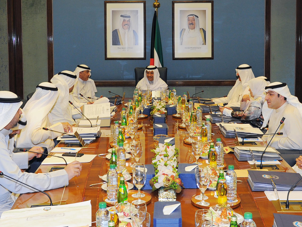عقد مجلس الوزراء اجتماعه الأسبوعي بعد ظهر اليوم في قاعة مجلس الوزراء بقصر بيان برئاسة سمو الشيخ جابر المبارك الحمد الصباح رئيس مجلس الوزراء، وبعد الاجتماع صرح وزير الدولـة لشئون مجلس الوزراء ووزير الإعلام بالوكالة الشيـخ/ محمد عبد اللـه المبارك الصباح بما يلي:أحاط سمو رئيس مجلس الوزراء الشيخ جابر المبارك الحمد الصباح المجلس علماً في مستهل أعماله بنتائج الزيارة التي قام بها للبلاد مؤخراً فخامة الرئيس عمر حسن أحمد البشير ـ رئيس جمهورية السودان الشقيقة والوفد المرافق له، وفحوى المحادثات التي أجراها مع حضرة صاحب السمو الأمير حفظه الله ورعاه، والتي تم خلالها بحث أوجه التعاون بين البلدين الشقيقين في كافة المجالات والميادين، كما تم تبادل الرأي ووجهات النظر حول تطورات الوضع في المنطقة وآخر المستجدات السياسية على الساحتين الإقليمية والدولية.كما أحاط النائب الأول لرئيس مجلس الوزراء ووزير الخارجية الشيخ صباح خالد الحمد الصباح المجلس علماً بنتائج مشاركته في أعمال الدورة التاسعة للجنة العليا الكويتية البحرينية المشتركة التي عقدت في دولة الكويت يوم أمس السبت، والتي تم خلالها بحث سبل تعزيز العمل المشترك في شتى مجالات التعاون في القطاعات الحيوية المهمة بين البلدين الشقيقين.ثم اطلع المجلس على توصية اللجنة التعليمية والثقافية والاجتماعية والصحية والشباب بشأن تقرير لجنة التنمية البشرية والمجتمعية بالمجلس الأعلى للتخطيط والتنمية حول إنشاء المجلس الوطني للعلوم والتكنولوجيا والابتكار، وقرر المجلس تكليف معهد الكويت للأبحاث العلمية بالتنسيق مع الجهات المختصة لبحث موضوع إنشاء لجنة وطنية تتولى وضع السياسات العامة للبحث والعلوم والتكنولوجيا والابتكار والإشراف والرقابة على تنفيذها، وذلك من كافة جوانبه التنظيمية والقانونية، وموافاة مجلس الوزراء بتصور كامل حول الموضوع خلال شهر من تاريخه.