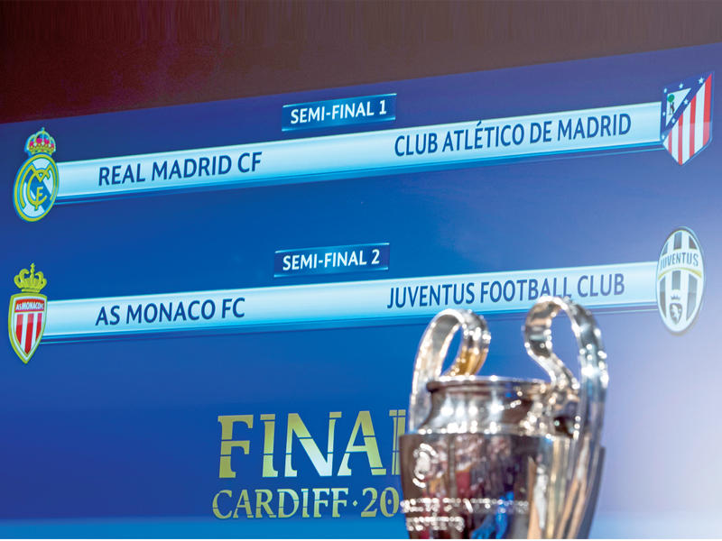 سيتجدد الموعد بين ريال مدريد حامل اللقب وجاره أتلتيكو مدريد في نصف النهائي لبطولة دوري أبطال أوروبا، فيما تجمع المباراة الأخرى بين موناكو الفرنسي ويوفنتوس الإيطالي، بعد القرعة التي سحبت أمس في مدينة نيون السويسرية.