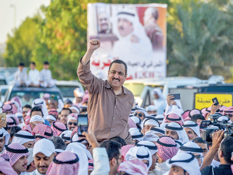 عقب سنتين سجناً قضاهما ثمناً لكلماته في خطاب "كفى عبثاً"، تنسم النائب السابق مسلم البراك هواء الحرية أمس، واحتشد آلاف المواطنين لاستقباله ما بين السجن المركزي وديوانه بالأندلس، وفور خروجه هاجم البراك رئيس مجلس الأمة مرزوق الغانم ووزير الدفاع الشيخ محمد الخالد على خلفية ما وصفه بأخطاء ارتكباها خلال المرحلتين السابقة والحالية.وقال البراك إن "الجميع يدرك الدور الذي قام به الغانم في سحب الجناسي لمعاقبة الخصوم السياسيين، والتشكيك في الانتماء للكويت، وإطلاق صفة المزور على ثلث الشعب".وتوعد البراك الخالد قائلاً: "إذا كان هروبك من الداخلية أعمى عينيك، فافتحهما الآن"، مردداً: "أكررها، سيسجن التاريخ سجاني".