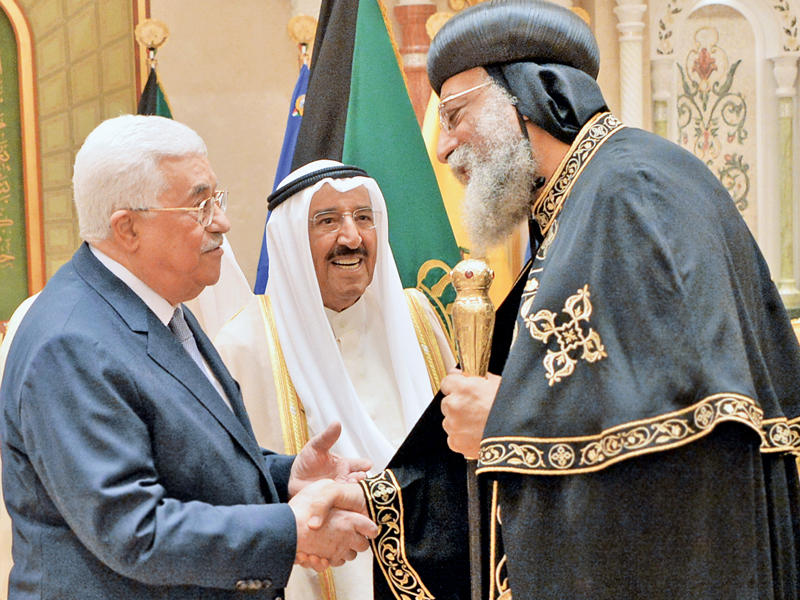 كما أقام صاحب السمو أمير البلاد بقصر بيان مأدبة غداء على شرف رئيس دولة فلسطين الشقيقة والوفد الرسمي المرافق له وذلك بمناسبة زيارته الرسمية للبلاد وبحضور قداسة البابا تواضروس الثاني بابا الاسكندرية وبطريرك الكرازة المرقسية.ووصل إلى البلاد، ظهر أمس، رئيس دولة فلسطين والوفد الرسمي المرافق له في زيارة رسمية للبلاد تستغرق يومين، حيث كان على رأس مستقبليه على أرض المطار صاحب السمو أمير البلاد، وسمو ولي العهد، وسمو رئيس مجلس الوزراء، ورئيس مجلس الأمة بالإنابة عيسى الكندري، والنائب الأول لرئيس مجلس الوزراء وزير الخارجية الشيخ صباح الخالد، ونائب رئيس مجلس الوزراء وزير الدفاع الشيخ محمد الخالد، ونائب وزير شؤون الديوان الأميري الشيخ علي الجراح، ونائب رئيس مجلس الوزراء وزير الداخلية الشيخ خالد الجراح، ونائب رئيس مجلس الوزراء وزير المالية أنس الصالح، ووزير الدولة لشؤون مجلس الوزراء وزير الإعلام بالوكالة الشيخ محمد العبدالله، وكبار القادة في الجيش والشرطة والحرس الوطني والإدارة العامة للاطفاء.وتشكلت بعثة الشرف المرافقة للرئيس عباس من الديوان الأميري برئاسة المستشار بالديوان الأميري د. عادل الطبطبائي.ويرافق الرئيس الفلسطيني وفد رسمي يضم وزير الخارجية د. رياض المالكي وعددا من كبار المسؤولين في دولة فلسطين.