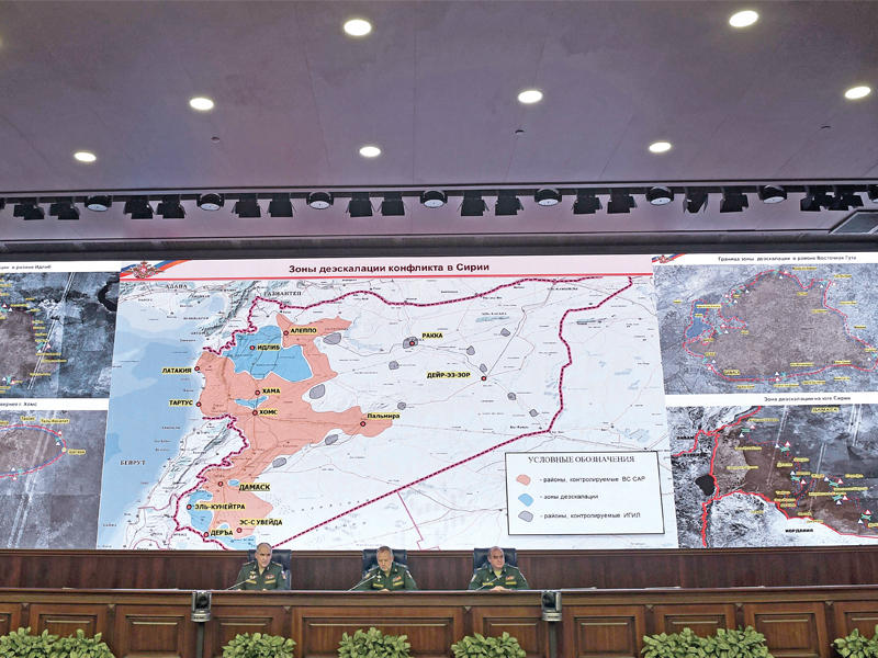 دخل الاتفاق الروسي التركي الإيراني على إنشاء 4 مناطق آمنة في سورية حيز التنفيذ، في حين رجحت موسكو مشاركة الأردن في تطبيق الاتفاق. وفي تحدٍّ واضح وصريح لواشنطن، قالت روسيا، إنها ستمنع الطائرات الأميركية من التحليق فوق هذه المناطق.