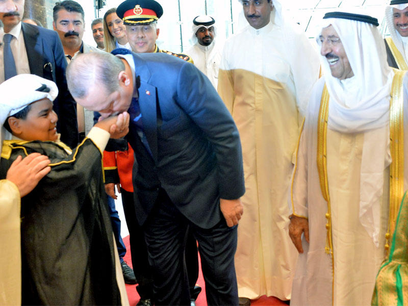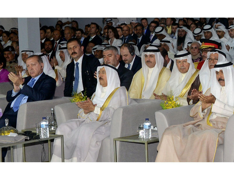 وأشار إلى الأهمية الكبرى التي توليها تركيا للتعاون مع دول مجلس التعاون لدول الخليج العربية في الميادين كافة، فضلا عن السعي لزيادة حجم التبادل التجاري الذي سجل نحو 17.4 مليار دولار العام الماضي، وهو «دون مستوى الطموح مقارنة بحجم الطاقات والإمكانات التي تملكها دول المجلس وتركيا».وأفاد بأن الشركات التركية قامت على مدار 14 عاما بتنفيذ جملة من المشروعات في الكويت تقدر قيمتها بنحو 51 مليار دولار، موضحا ان اتفاقية التجارة الحرة المزمع توقيعها بين البلدين من شأنها أن تسهم في تطوير العلاقات وتفتح آفاقا جديدة للتعاون.وأوضح ان «العلاقات الاقتصادية الثنائية تنمو بالتوازي مع العلاقات السياسية»، مؤكدا في الوقت ذاته أهمية العلاقات الثقافية والتاريخية.وبين أن الزيارة التي قام بها صاحب السمو أمير البلاد إلى تركيا في مارس الماضي شكلت دفعة حقيقية لمستقبل واعد في العلاقات الثنائية بين البلدين، مؤكدا الأهمية الكبرى التي توليها بلاده لموضوع الاستقرار والأمن لكلا البلدين.وذكر أن حجم التبادل التجاري بين الكويت وتركيا بلغ نحو 1.3 مليار دولار في العام الماضي في حين بلغ عدد الزوار الكويتيين لتركيا 180 ألفا، معربا عن شكره لسمو أمير البلاد على «الاهتمام الذي يوليه سموه لتطوير العلاقات» لاسيما بعد قيام شركة تركية بتنفذ مشروع مبنى المطار الجديد الوارد ضمن مشاريع (خطة الكويت 2035) «بما يشكل مثالا واضحا على هذا الاهتمام».وأوضح انه بتدشين أعمال مشروع مبنى المطار الجديد الذي تقدر تكلفته بنحو 4.4 مليارات دولار يكون حجم المشروعات التي تقوم شركات تركيا بتنفيذها في الكويت حوالي 6.5 مليارات دولار «وهو تطور كبير»، لاسيما ان حجم مثل هذه المشروعات في عام 2013 كان 500 مليون دولار.وأكد إردوغان ان شركة ليماك من الشركات المميزة في مجال بناء وتشييد المطارات، مبينا ان الشركات التركية ستبذل قصارى جهودها للاسهام في تنمية الكويت في الوقت الذي يتم العمل فيه على زيادة حجم الاستثمارات الكويتية في تركيا البالغة نحو 1.5 مليار دولار عبر تقديم كل التسهيلات والضمانات للمستثمرين الكويتيين.وشدد على أن «تحقيق الازدهار والأمن في العالم مرتبط باستقرار بلادنا ومنطقتنا ومرتبط بالتعاون التركي الكويتي الذي يعد بوابة مهمة لتجاوز الأزمات ومحركا للتعاون مع سائر بلدان المنطقة».تحفة معمارية