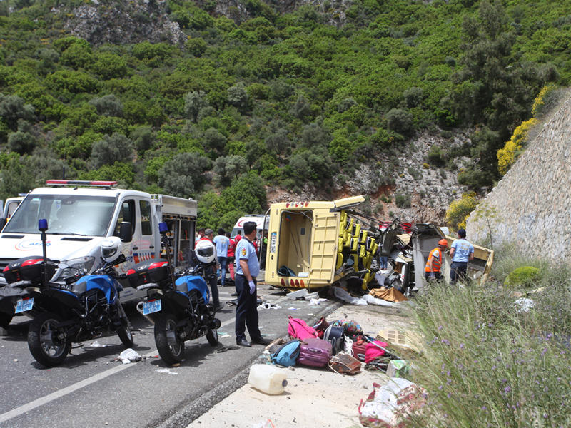 وكانت الحافلة سقطت في وقت سابق اليوم بمنحدر بعد ان فقد السائق السيطرة عليها وهي متجهة من منطقة (بوكا) بمدينة (ازمير) الى (مارماريس).