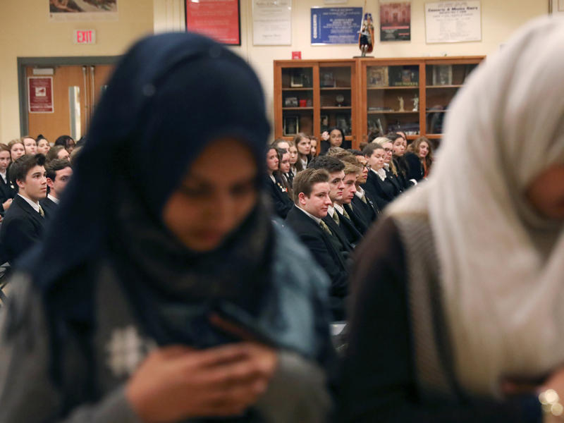 في مدرسة ثانوية كاثوليكية بضاحية لونج أيلند في نيويورك قام نحو 24 طالبا مسلما بأداء الصلاة خلال زيارة لتلك المدرسة في حين وقف طلاب المدرسة المضيفة لمشاهدة الصلاة.وكان جدول الزيارة بسيطا: إعطاء الطلاب ،الذين تبتعد مدرستهم عن الأخرى 16 كيلومترا فقط لكنها تختلف كلية من حيث الثقافة، الفرصة لمعرفة بعضهم البعض.تأتي الزيارة أيضا في إطار مبادرة طموحة ستتبناها قرابة 80 مدرسة إسلامية أمريكية من المدارس الابتدائية والإعدادية والثانوية بداية من الخريف لإعطاء الأمريكيين صورة أفضل عن المسلمين الأمريكيين في وقت يشعر فيه كثيرون بأنهم مستهدفون من قبل إدارة الرئيس دونالد ترامب.ووفقا لاستطلاع أجراه مركز بيو للأبحاث في فبراير شباط فإن من المرجح أن ينظر الأمريكيون إلى المسلمين الذين يشكلون واحد في المئة من الشعب الأمريكي على أنهم متطرفون إذا لم تكن لديهم معرفة شخصية بهم. وأظهر نفس الاستطلاع أن 60 في المئة من الأمريكيين الذين يعرفون مسلمين يعتقدون أن المسلمين لا يدعمون التطرف لكن 48 في المئة فقط من الذين لا يعرفون مسلمين يعتقدون ذلك.