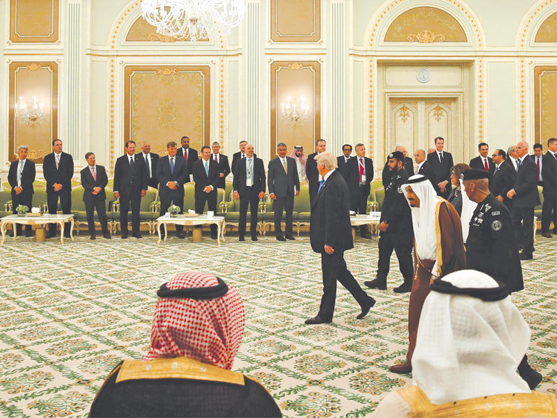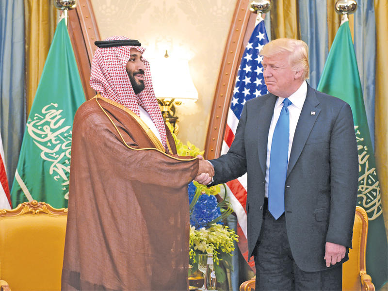 ترامب مستقبلاً بن سلمان في مقر إقامته بالرياض (أ ف ب)
