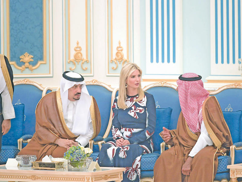 وفي الصورة إيفانكا مستمعة إلى الأمير مقرن.