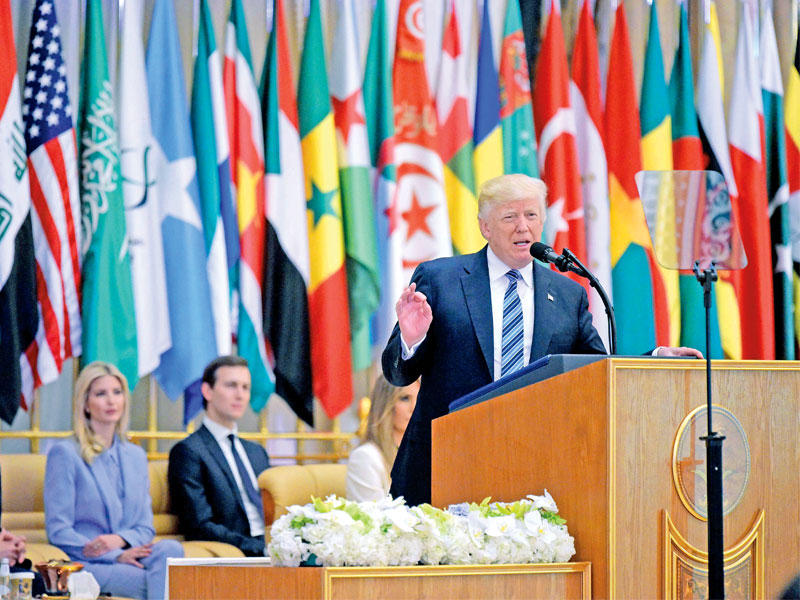ودعا الرئيس قادة الدول العربية والمسلمة إلى «عدم تقديم ملاذ للارهابيين» و«إخراجهم» من هذه الدول، مؤكداً في الوقت ذاته انه يحمل الى العالمين العربي والإسلامي «رسالة صداقة وامل ومحبة».وأضاف: «أخرجوهم من أماكن عبادتكم. أخرجوهم من مجتمعاتكم»، مضيفا «على كل دولة في المنطقة واجب ضمان الا يجد الإرهابيون أي ملاذ على أراضيها».وشدد ترامب على أنه يحمل رسالة «صداقة وأمل ومحبة»، وقال «علينا الانفتاح واحترام بعضنا البعض من جديد، وجعل هذه المنطقة مكانا يمكن لكل رجل وامرأة، مهما كان دينهما او عرقهما، ان يتمتعا فيه بحياة ملؤها الكرامة والأمل».وقال: «ملتزمون بتعديل استراتيجيتنا لمواجهة أخطار الإرهاب، ويجب أن نعمل على قطع مصادر التمويل للتنظيمات الإرهابية»، وأشار إلى أن حزب الله إحدى المنظمات الإرهابية، مؤكداً أن الدول الإسلامية يجب أن «تتحمل المسؤولية الكبرى في هزيمة الإرهاب».وقال الرئيس الأميركي: «مستعدون للوقوف معكم للبحث عن المصالح المشتركة»، مضيفاً أن «هذه القمة ستعلن بداية نهاية من ينشر الإرهاب».وأضاف أنه تعهد أن يعزز صداقات الشعب الأميركي، وأن يبني تحالفات جديدة، مشيراً إلى أن الاتفاقات الموقعة مع السعودية ستؤمن آلاف فرص العمل في البلدين، كما أن اتفاقات التعاون العسكري ستساعد الجيش السعودي على لعب دور أكبر.وقال: «لسنا في معركة بين الأديان، إنما في معركة بين الخير والشر. فعندما ننظر لضحايا العنف لا ننظر إلى دينهم»، وأشار إلى أن «نحو 95 في المئة من ضحايا الإرهاب هم من المسلمين»، مضيفاً: «مستعدون للوقوف معكم للبحث عن أمن ومصالح مشتركة، وعلينا أن نتوحد خلف هدف واحد هو هزم الإرهاب والتطرف». وإذ وصف حزب الله و«حماس» و«داعش» وغيرهم بممارسة «نفس الوحشية»، قال إن «ذبح الأبرياء باسم الدين إهانة لأتباع كل الأديان».وشدد على أن الشرق الأوسط يجب أن يتحول إلى أحد مراكز التجارة العالمية، مضيفاً أن «هذه القمة تمثل بداية السلام، ليس فقط في الشرق الأوسط بل في العالم، ودول الشرق الأوسط عليها أن تقرر ما هو المستقبل الذي تريده».ولفت الرئيس الأميركي الى أن القادة الدينيين يجب أن يساهموا في توضيح خطر الأفكار الإرهابية، حيث إنه يجب مواجهة أزمة التطرف بكل أشكاله، مؤكداً أنه يجب دعم ثقافة التعايش واحترام الآخر في الشرق الأوسط.وعن الأزمة السورية، قال «يجب أن نعمل معاً لإنهاء الأزمة الإنسانية في سورية والتخلص من داعش».سلمان