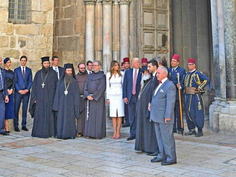 قادماً من الرياض في أول رحلة مباشرة من العاصمة السعودية إلى تل أبيب، بدأ الرئيس الأميركي دونالد ترامب أمس زيارة لإسرائيل (المحطة الثانية) من جولته الخارجية الأولى منذ فوزه بالرئاسة. وأكد ترامب في تصريحات لدى وصوله إلى مطار بن غوريون قرب تل أبيب «في رحلتي الأولى إلى الخارج كرئيس، جئت إلى هذه الأرض المقدسة والقديمة، لإعادة تأكيد الروابط الصلبة بين الولايات المتحدة ودولة إسرائيل».وأضاف «أمامنا فرصة نادرة لتحقيق الأمن والاستقرار والسلام لهذه المنطقة وشعبها، وهزم الإرهاب، وخلق مستقبل من الانسجام والازدهار والسلام، ولكن لا يمكننا الوصول إلى هناك إلا بالعمل معاً. لا توجد أي طريقة أخرى».