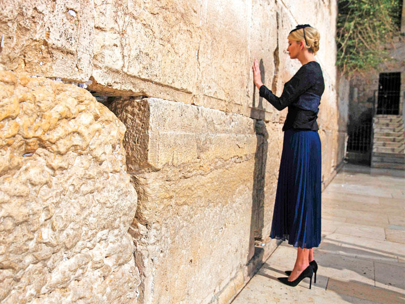 ولم يتحدث عن حل الدولتين، الذي يدعو الى انشاء دولة فلسطينية الى جانب دولة اسرائيل. وكان مسؤول في إدارة ترامب أثار ضجة في فبراير الماضي، عندما ألمح إلى أن واشنطن قد تتخلى عن حل الدولتين كسبيل لتحقيق السلام بين إسرائيل والفلسطينيين.وقال المسؤول في البيت الأبيض وقتها إن «الإدارة الأميركية لن تسعى بعد اليوم إلى إملاء شروط أي اتفاق لحل النزاع بين الإسرائيليين والفلسطينيين، بل ستدعم أي اتفاق يتوصل إليه الطرفان، أيا يكن هذا الاتفاق». وأضاف أن «حل الدولتين الذي لا يحقق السلام ليس هدفا يطمح إليه أي طرف»، معتبراً أن «الهدف هو السلام، سواء تحقق ذلك عبر حل الدولتين، إن رغب الطرفان في ذلك، أو عبر خيار آخر إن كانت تلك رغبتهما».وأصبح ترامب أمس أول رئيس أميركي يزور البلدة القديمة وهو في منصبه، حيث توقف في البداية عند كنيسة القيامة، التي تعد أقدس مكان لدى المسيحيين حول العالم. واليوم، يزور ترامب مدينة بيت لحم في الضفة الغربية المحتلة، لإجراء محادثات مع نظيره الفلسطيني محمود عباس.وزار الرئيس الأميركي حائط المبكى، ليصبح أول رئيس اميركي يزور هذا الموقع المقدس لدى اليهود، والذي يسميه المسلمون حائط البراق ويقع أسفل باحة الأقصى، أثناء وجوده في السلطة.ووضع ترامب، الذي ارتدى قلنسوة يهودية تقليدية سوداء اللون، يده اليمنى على الحائط ثم قام، بحسب التقليد المتبع، بوضع ورقة بين حجارة الحائط. وعادة تتضمن الأوراق صلوات أو أمنيات.ثم قام الرئيس الخامس والأربعون للولايات المتحدة بكتابة بعض العبارات على سجل الزوار الكبار، وتوجه إلى الموقع بدون ان يرافقه أي مسؤول إسرائيلي.وتوجهت السيدة الأولى ميلانيا وابنة ترامب إيفانكا التي تشغل منصب مستشارة في البيت الأبيض، والتي اعتنقت اليهودية قبل زواجها من غاريد كوشنير، معاً إلى القسم المخصص للنساء في الحائط. وبعد أن صلت ايفانكا، التي ارتدت ملابس سوداء اللون، قامت بمسح دموعها من التأثر.ويعتبر اليهود حائط المبكى آخر بقايا المعبد اليهودي (الهيكل)، الذي دمره الرومان عام 70، وهو أكبر الأماكن قداسة لديهم.تيلرسون