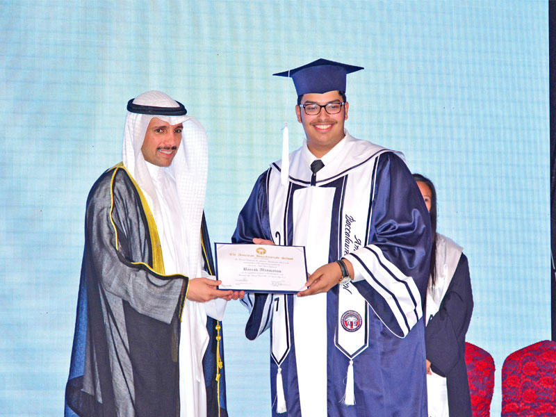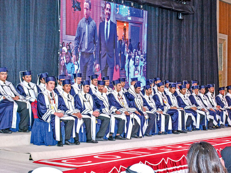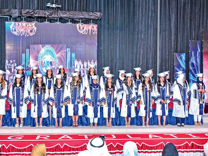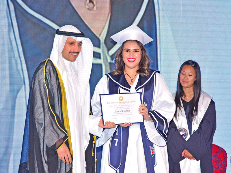أقامت مدرسة البكالوريا الأميركية حفل تخرج الدفعة التاسعة من طلبة المدرسة، برعاية وحضور رئيس مجلس الأمة مرزوق الغانم، في قاعة الراية.وعبَّرت مديرة المدرسة، أريج علي الغانم، عن فخرها وسرورها، بتخريج كوكبة من طلبة المدرسة، لافتة إلى أن "البكالوريا الأميركية" حرصت على إعدادهم وتعليمهم بجهود حثيثة صادقة، ليصبحوا مؤهلين للقيام بواجبهم الوطني والإنساني، وإكمال مسيرة بناء الوطن.