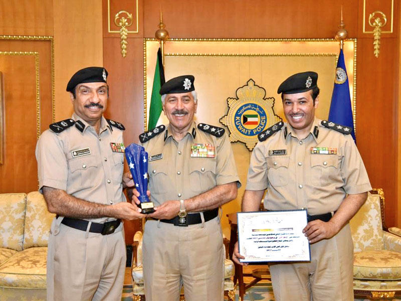 وأثنى على الجهود التي بذلها المطيري اثناء اداء مهامه وواجبه العسكري الانساني، الذي لاقى استحسانا من عدد من المواطنين، والذي تزامن مرورهم مع أدائه لخدماته الإنسانية، متمنيا له المزيد من الجهد والعطاء والتميز في العمل. وأكد حرص وزارة الداخلية على تكريم أبنائها المخلصين، مشيرا الى أن المطيري قدم نموذجا يحتذى به في اعطاء الصورة الحقيقية لرجل الامن وللمؤسسة الامنية.من جهة اخرى، استقبل الدوسري، بحضور المدير العام للادارة العامة للأدلة الجنائية اللواء الركن شهاب الشمري، الرائد احمد العنزي، والنقيب عبدالله العوضي، والملازم أول مشعل البيدان، من مرتبات الادارة العامة للأدلة الجنائية، لحصولهم على درجة الماجستير.وأثنى على الجهد الذي بذله الضباط اثناء دراستهم وتميزهم في الموضوعات التي قدموها في إعداد رسائل الماجستير، مؤكدا اهمية مواصلة البحث العلمي والعملي لرجال الامن ليتمكنوا من المساهمة بشكل ايجابي في نهضة البلاد، ورفد المكتبة الأمنية بأحدث الدراسات والأبحاث.
