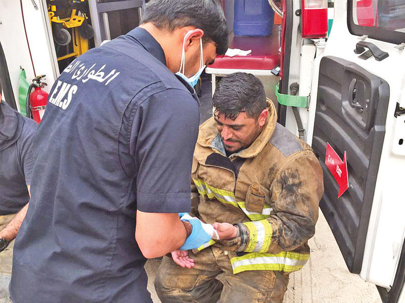 وأضاف العقيد الأمير أن رجال الإطفاء شرعوا في مكافحة الحريق، إلا أن انفجارات قوية ومتعددة وقعت داخل المصنع المقسم إلى قسمين؛ الأول مخصص لصناعات المواد البتروكيماوية، وهو الذي بدأ به الحريق، والآخر يستخدم كمخزن مؤقت للمنتجات، وقد تسببت تلك الانفجارات في خطر حقيقي على رجال الإطفاء، وقد امتد لهيب النيران الى ما يقارب من 27 مركبة كانت متوقفة في محيط المصنع، وطوقت فرق الإطفاء موقع الحريق، حتى لا تمتد ألسنة اللهب الى المباني المجاورة، ونجحوا في السيطرة عيه وإخماده بعد حوالي 5 ساعات من عمليات المكافحة المستمرة.وذكر أن الحادث أسفر عن إصابة حارس المصنع، (آسيوي)، ونقل إلى المستشفى من قبل فنيي الطوارئ الطبية، كما أصيب في الحادث 3 من رجال الإطفاء أثناء تعاملهم مع الحريق، وتم إرسال أحدهم للعلاج في المستشفى، فيما عولج الإطفائيان الآخران في موقع الحادث، موضحا أن الخسائر المادية الناتجة عن الحادث كبيرة جدا. وأشار العقيد الأمير إلى أن ضباط وحدة تحقيق الحوادث وضباط إدارة الوقاية انتقلوا الى الموقع للمعاينة وفتح تحقيق لمعرفة أسباب اندلاع النيران، والكشف عما إذا كان هناك أي مخالفات جسيمة ساعدت في انتشار رقعة النيران، لافتا الى أن فرق الإطفاء شرعت بعد إخماد الحريق في عمليات التفتيش والبحث.