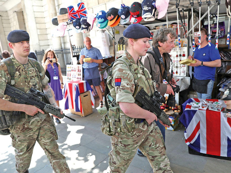بعد أن حذرت من هجمات وشيكة، ورفعت حال التأهب إلى «حرجة»، أطلقت رئيسة الوزراء البريطانية تيريزا ماي «عملية تيمبرير» الأمنية، التي أعطت الجيش الضوء الأخضر بالانتشار حول النقاط الحساسة في البلاد، ومساندة الشرطة بقوة تبلغ 5000 جندي، بعد هجوم مانشستر الإرهابي. وشوهدت تعزيزات أمس في محيط المواقع الرئيسية بالبلاد، بينها البرلمان وقصر باكنغهام والسفارات الأجنبية في لندن، كما أعلنت الشرطة إجراءات أمنية إضافية لحماية مناسبات رياضية مقبلة، بينها المباراة النهائية لكأس الاتحاد الإنكليزي لكرة القدم بعد غد.