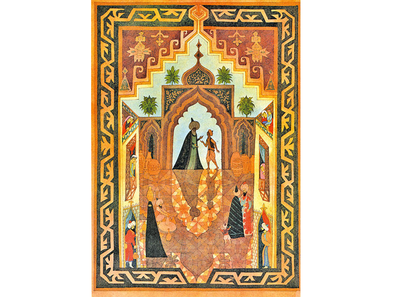 في هذا الجزء من ليالي «ألف ليلة وليلة»، تصل شهرزاد إلى مجموعة حكايات تدور حول قيم الوفاء بالدين والزهد واللجوء إلى الصبر، في مواجهة المكاره والأزمات التي يمرّ بها البشر. تتنقل بين قصص قصيرة عدة، من بينها قصة الرجل البغدادي البسيط، الذي قال له الهاتف في المنام إن رزقه في مصر، فلما وصل إليها سُرق وضُرب وعُذِّب، إلى أن وصل إلى الوالي، الذي ضحك من سبب مجيئه من بغداد إلى مصر ثم حكى له مناماً رأى فيه بيتاً في بغداد يختبئ فيه كنز ثمين.