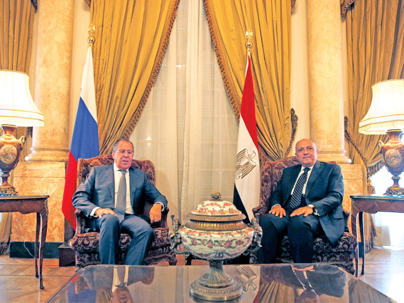 في غضون ذلك، انطلقت في القاهرة أمس المشاورات المصرية الروسية في إطار صيغة "2+2" بين وزيري خارجية ودفاع البلدين، والتي تم إطلاقها منذ نهاية 2013، بهدف مناقشة سبل الارتقاء بالعلاقات الثنائية بين البلدين، واستقبل الرئيس السيسي، وزيري الخارجية والدفاع الروسيين سيرجي لافروف وسيرغي شويغو، بحضور وزيري الخارجية والدفاع المصريين، سامح شكري وصدقي صبحي.وتناول السيسي مع المسؤولين الروسيين مجمل علاقات التعاون بين البلدين في مختلف المجالات، وخصوصا ما يتعلق بجهود مكافحة الإرهاب، بينما استعرض اجتماع "2+2"، آليات العمل على دفع علاقات التعاون المشترك، بجانب القضايا والأزمات الإقليمية في كل من سورية وليبيا، والمواقف المصرية والروسية إزاءها.