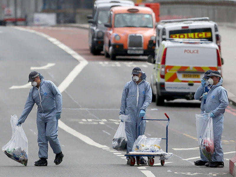 بعد أيام من هجوم مانشستر الإرهابي، وعشية الانتخابات المبكرة المقررة الخميس، شهدت بريطانيا مساء أمس الأول هجوماً إرهابياً منسقاً، نفذه 3 مهاجمين على الأقل، وتخلله دهس وطعن وذبح بالسكاكين، على جسر لندن بريدج في منطقة بارا ماركيت، مما أسفر عن مقتل 7 أشخاص. وبينما كانت المطاعم والحانات في منطقة بارا ماركيت الشهيرة، تغص بالناس في ليلة صيفية معتدلة وسط لندن، حيث اجتمعوا لمشاهدة المباراة النهائية لدوري أبطال أوروبا على شاشات كبيرة، انقضت شاحنة صغيرة بيضاء بسرعة على المارة على الجسر، فأوقعت عدداً من المصابين، وبعدما هرع من أفلت من الدهس لمساعدة المصابين، التفت الحافلة التي كانت تسير بسرعة 50 ميلاً في الساعة، وانقضت بسرعة مجدداً على الناس المتجمعين على الطريق.ونزل المهاجمون الثلاثة الذين كانوا يرتدون سترات ناسفة وهمية من الحافلة مسلحين بسكاكين كبيرة وطعنوا عشرات الأشخاص وذبحوا بعضهم في مناطق متفرقة. واستمرت العملية فقط 8 دقائق تمكنت بعدها الشرطة من تصفية الإرهابيين.