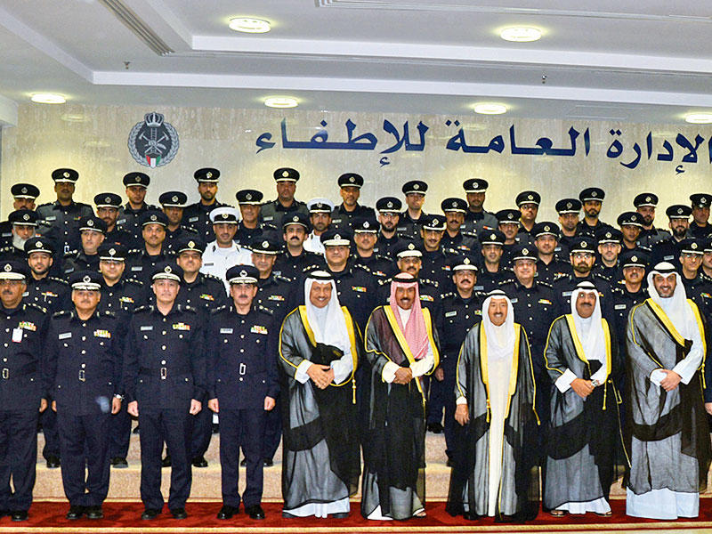 ثم زار صاحب السمو والوفد المرافق مبنى الإدارة العامة للإطفاء، حيث كان في استقبال سموه وزير الدولة لشؤون مجلس الوزراء وزير الإعلام بالوكالة الشيخ محمد العبدالله، والمدير العام للإدارة العامة للإطفاء الفريق خالد المكراد وكبار القيادات.وألقى سموه كلمة قال فيها: «أستهل كلمتي بالإشادة بما تقومون به من واجب وطني مشرف للحفاظ على الأرواح والممتلكات والتعامل مع مختلف الحوادث الخطيرة بكل إخلاص وتفان، وبما تقدمونه من تضحيات كبيرة في سبيل ذلك». وأضاف سموه: «نقدر جهود الإدارة العامة للإطفاء في نشر التوعية بالقواعد الأساسية للسلامة، وكيفية التعامل بصورة صحيحة مع مختلف الحوادث لا سيما الحرائق، متطلعين إلى تعزيز هذا الدور التوعوي ليصبح مفهوما سائدا لثقافة السلامة في المجتمع. ونثمن في الوقت ذاته تدشين الإدارة العامة للإطفاء أول مختبر لتحليل عينات الحوادث ومخلفات الحريق. ونسأل المولى تعالى أن يوفقكم ويسدد خطاكم ويحفظكم ويكتب لكم السلامة، وأن يتغمد شهداء الوطن الأبرار برحمته ويسكنهم فسيح جناته».وألقى المدير العام للإدارة العامة للإطفاء كلمة قال فيها: «لقد حظيت الإدارة برعاية واهتمام غير مسبوق بتاريخها من قبل سموكم، وهي رعاية ستظل موضع فخر واعتزاز وتقدير لجميع رجال الإطفاء، ودافعا لهم ليكونوا عند حسن ظن سموكم بهم، علما أن من دواعي سرورنا أن تتزامن زيارتكم المباركة مع بدء احتفالات الإدارة العامة للإطفاء بالذكرى السبعين لإنشاء أول جهاز إطفاء في الكويت». وأضاف: «إننا نؤمن بأنه لا يمكن التعامل مع الكوارث والحوادث الكبرى الطبيعية منها والبشرية، والتعافي من آثارها من خلال جهة بمفردها، ولكن يكون التعامل مع تلك الكوارث والحوادث من خلال تضافر جهود عدة جهات حكومية وأهلية ذات صلة، كل فيما يخصه، تحت قيادة موحدة وإجراءات عمل واضحة وملزمة للجميع.ومن هذا المنطلق حرصت الإدارة العامة للإطفاء على إقامة التمرين السنوي (شامل) والذي يجسد مبدأ التكامل والتعاون بين الجهات الحكومية العسكرية والمدنية للتعامل مع هذه الكوارث والحوادث بكل كفاءة واقتدار».وزاد: «ومن النتائج الإيجابية لهذا التمرين توحيد المعدات والآليات والأنظمة بين الجهات ذات الصلة بالتعامل مع هذه الكوارث والحوادث، إضافة الى التكامل باستخدام المعدات ووضعها تحت تصرف الجهة المعنية وقت الحاجة.ولعل خير مثال على ذلك التكامل والتعاون مع الرئاسة العامة للحرس الوطني من خلال البروتوكول الموقع فيما بيننا حيث يتم استخدام وطلب الآليات والمعدات الخاصة بعمليات الإطفاء والإنقاذ بالسرعة والكفاءة المطلوبة وفق إجراءات عمل ملزمة ومعتمدة، كذلك التعاون مع وزارة الدفاع ووزارة الداخلية في حال الحاجة الى استخدام الطيران العمودي في عمليات البحث والإنقاذ ونقل المعدات.واسترشادا بتوجيهاتكم السامية فقد تم الحزم بتطبيق القوانين دون استثناء أو تفرقة على جميع المنشآت المخالفة لاشتراطات الأمن والسلامة وتم إصدار قرارات بالغلق الإداري لهذه المنشآت لحين إزالة مخالفاتها وذلك حفاظا على الأرواح والممتلكات».وختم قائلا: «نؤكد لسموكم أن أبناءك رجال الإطفاء على العهد باقون بالتضحية بأرواحهم من أجل الحفاظ على الارواح والممتلكات».ثم ألقى رقيب اول اطفاء نايف المطيري قصيدة شعرية، بعدها جرى عرض فيلم وثائقي بمناسبة مرور 70 عاما على تأسيس «الاطفاء».وتم خلال هذه الزيارة اهداء سموه والوفد المرافق هدايا تذكارية بالمناسبة.وقد رافق سموه في الزيارة مدير مكتب صاحب السمو احمد الفهد ووكيل ديوان سمو ولي العهد الشيخ مبارك الفيصل والشيخ ماجد جابر الحمود والشيخ عبدالله ناصر الصباح والشيخ صباح ناصر الصباح والشيخ دعيج فهد الصباح والشيخ فهد ناصر الصباح.الدوسري: التصدي للإرهاب وتعزيز التنسيق