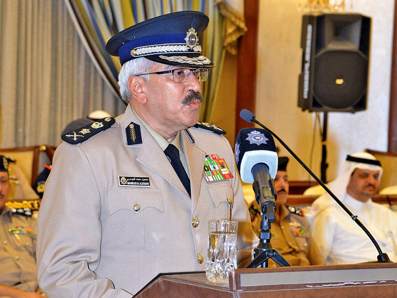 ألقى وكيل وزارة الداخلية محمود الدوسري كلمة قال فيها «منذ تشريف سموكم للمؤسسة الأمنية في مثل هذه الأيام من العام الماضي لم ندخر جهدا في السعي قدما لرفع معدلات الأداء الأمني كما وكيفا للاستراتيجية الشاملة في مختلف قطاعات الداخلية مستلهمين تأكيدكم بأن أمن الكويت لا تهاون فيه ولا تساهل وهو على رأس الأولويات والاهتمامات وقد تحددت منطلقات الاستراتيجية ونجاحاتها بالحفاظ على الأمن والنظام العام وتحقيق هيبة وسيادة القانون من خلال تعزيز التعاون والتنسيق بين الجهات الأمنية والعسكرية في التصدي للتطرف والإرهاب وتعزيز الاتفاقات الخليجية والعربية والدولية في مجال التنسيق الأمني وتبادل الخبرات والمعلومات.واستنادا إلى الاستراتيجية أيضا التزمت الكويت بتعزيز وحماية حقوق الإنسان والطفل مما أسهم في جعل الكويت بيئة جاذبة وأصبحت دولتنا تخطو بخطى ثابتة إلى المثالية في مجال حقوق الانسان. كما حقق الأمن الوقائي للوزارة العديد من الإنجازات التي تم من خلالها القضاء على عناصر الإرهاب، بالاضافة إلى ترسيخ تعاون الداخلية مع وزارة الدفاع ورئاسة الحرس الوطني والإدارة العامة للاطفاء في إطار خطة لتأمين الجبهة الداخلية وفي إطار من آليات التنسيق المتكامل للحفاظ على أمن الوطن وسلامته».