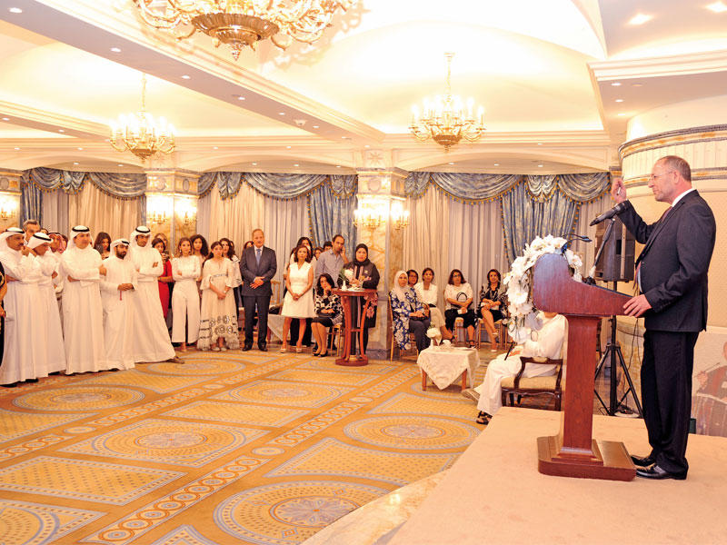 أقام خريجو مدرسة البيان ثنائية اللغة الخاصة وأولياء امورهم حفل وداع لناظر المرحلة الثانوية جهاد سعد الدين بمناسبة انتهاء فترة خدمته في المدرسة، وذلك تكريما وتقديرا على عطاءاته بعد ان امضى 26 عاما، تخرج على يديه المئات من الطلبة المتميزين الذين التحقوا بارقى جامعات العالم وتولوا مناصب قيادية في القطاعين الحكومي والخاص.حضر الاحتفالية وزير التربية وزير التعليم العالي د. محمد الفارس ورئيسة الجمعية الثقافية الاجتماعية النسائية لولوة الملا والمدير العام السابق للمدرسة مي العيسى ورئيس مجلس الآباء والمعلمين سابقا لطيفة المطوع وطلبة المدرسة وخريجوها وذويهم وأعضاء من الهيئة التدريسية والادارية والعاملين في المدرسة.