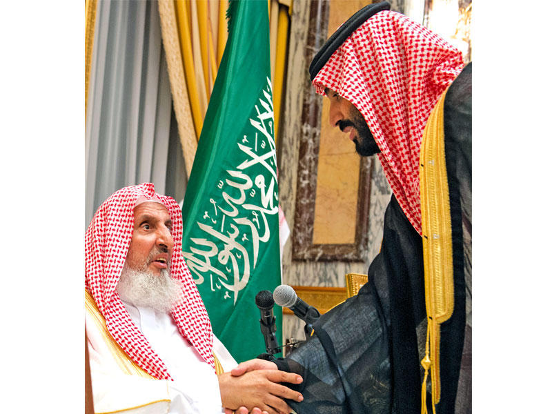 من جهته، قال المفتي العام للمملكة الشيخ عبدالعزيز بن عبدالله آل الشيخ، إن «هذه البلاد العظيمة ينبغي المحافظة على كيانها».وأضاف: «علينا أن نكون يداً واحدة في هذه البلاد المباركة لنحميها من كيد الكائدين فإنها مستهدفة كل استهداف لما فيها من الخير العظيم والكبير، لنكون يداً واحدة إن شاء الله وصفاً واحداً». وختم: «نبايعك على كتاب الله وسنة رسوله صلى الله عليه وسلم». ثم قام ولي العهد الجديد بمصافحة الحاضرين الواحد تلو الآخر.وكان في مقدمة المبايعين الأمير بندر بن محمد بن عبدالرحمن والمستشار الخاص لخادم الحرمين الشريفين الأمير عبدالإله بن عبدالعزيز، والأمير خالد بن فهد بن خالد، والأمير مقرن بن عبدالعزيز.وحرصاً من الملك سلمان على راحة المواطنين ورغبة منه في التسهيل عليهم وحتى لا يتكبدوا مشقة السفر إلى مكة المكرمة، فقد أمر بأن يتلقى أمراء المناطق ومحافظو المحافظات ورؤساء المراكز البيعة، نيابة عن الأمير محمد بن سلمان، ولي العهد نائب رئيس مجلس الوزراء وزير الدفاع.وسطع نجم الأمير محمد غداة تعيينه في منصب ولي ولي العهد قبل عامين، بعد أشهر قليلة من تسلم والده مقاليد الحكم مطلع عام 2015 إثر وفاة الملك عبدالله.وسعى إلى تطبيق إصلاحات اقتصادية واجتماعية في المملكة. وهو يتسلم مهام نائب رئيس مجلس الوزراء وزير الدفاع والطيران، في وقت تقود المملكة حملة عسكرية في مواجهة المتمردين الحوثيين باليمن.كما يتولى رئاسة الديوان الملكي، وهو مستشار خاص للعاهل السعودي، ورئيس مجلس الشؤون الاقتصادية والتنمية، ورئيس المجلس الأعلى لشؤون البترول والمعادن المشرف على إدارة شركة «أرامكو» عملاقة النفط السعودي. والأمير محمد صاحب «رؤية 2030» الطموحة التي تهدف إلى تنويع الاقتصاد عبر التقليل من الاعتماد على النفط، وجذب استثمارات في قطاعات أخرى بينها الترفيه في دولة أكثر من نصف سكانها دون سن الـ25. وبتعيين نجله وليا للعهد، يكون الملك سلمان أكد بأمر ملكي إفساح المجال للانتقال إلى حكم جيل شاب.