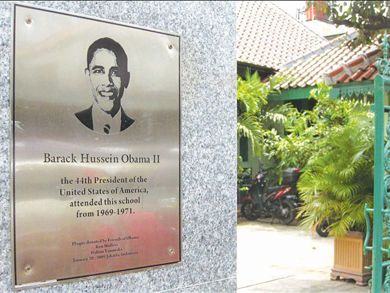 يذكر أن أوباما قضى فترة من طفولته في إندونيسيا، بعد أن تزوجت أمه ستانلي آن دونهام رجلاً إندونيسياً يدعى لولو سويتورو، وتم نصب تمثال لأوباما وهو طفل في 2010 خارج مدرسة جاكرتا الابتدائية التي كان يدرس فيها.وسافر أوباما إلى عدد من الدول منذ أن غادر البيت الأبيض في 20 يناير الماضي.