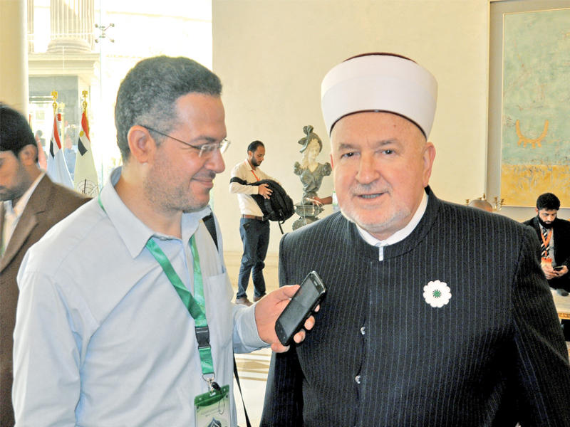 ● ما الذي يمكن أن يتم حتى تصبح قيم الإسلام أرضاً مشتركة لكل المسلمين في أوروبا؟- يتوجب أن ندرس بصورة جدية طريقة تجعل كلاً من وجود الإسلام كدين عالمي والمسلمين كمواطنين دوليين أمرا مؤسسيا، كما يتطلب الأمر أن نعلي من رسالة الإسلام، وهي العهد والسلام والأمن عبر العالم، والعمل على توضيح أن الإسلام ليس دين العنف والإرهاب.● منحت جائزة السلام من منظمة "اليونيسكو" بالأمم المتحدة عن نشرك للوسطية بين الأديان، فما أهم ركائز هذه الدعوة؟- الوسطية هي روح الإسلام وعنوانه بين كل البشر، فبها انتشر الإسلام ومن خلالها استطاعت كل الأديان أن تعيش في كنفه، ونحن- مسلمي البوسنة- قمنا بتأسيس مشروع دعوي في كل أوروبا أطلقنا عليه مشروع الوسطية، للتعريف بالإسلام الصحيح، وقد لاقى قبولا كبيراً، وتم تأسيس مجلس إدارة الأوقاف البوسنية لشؤون الوسطية، من أجل الحوار بين الديانات والمعتقدات الأخرى، لأن الحوار هو شريان الحياة واستمرار الأديان في سلام على أرض مشتركة، ومن شروطه أن يكون الحوار متكافئاً وأن يسير وفق خطوط متوازية وبرامج معدة سابقا، وهذه كانت أهم المرتكزات التي انطلق منها مشروع الوسطية. ● حدثنا عن الوعي الديني لمسلمي البوسنة.- الشيوعية فرضت قيود أغلالها قرابة 70 عاماً على المسلمين في البوسنة، فأغلقت المساجد والمؤسسات الدينية، وعملت على تذويب هويتنا واليوم بعد أن نعمنا بالأمن والسلام بعد الحرب حدث تفاهم بموجبه أصبح من المسلمين وزير وأصبحت هناك أوقاف مخصصة لنقل شعائر المسلمين عبر التلفزيون الرسمي والإذاعة، وبفضل هذا المناخ استنهض المسلمون حياتهم وممارسة معتقداتنا بسلام، وزاد وعي المسلمين البوسنيين دينيا بشكل كبير.● ماذا عن دور الإفتاء في زيادة هذا الوعي الديني؟- نعمل على إرسال أبنائنا للدراسة بالأزهر وجامعات الدول الإسلامية، وقمنا بإنشاء مدارس ابتدائي وإعدادي وثانوي من أجل تخريج أجيال مسلمة قادرة على المشاركة والفاعلية في إدارة البلاد، إلى جانب إقامة العديد من الكتاتيب لتحفيظ القرآن الكريم، وعدد الذين يحفظون القرآن الكريم في زيادة مستمرة.● هناك عدد كبير من الشباب المسلم في البوسنة انضم لصفوف القتال في سورية والعراق وليبيا، فكيف تتعاملون مع هؤلاء بعد رجوعهم بالأفكار المتشددة؟- هذه ليست مصيبتنا فقط، فهناك أعداد كبيرة من أبناء المسلمين في أوروبا اشتركوا في القتال في صفوف تنظيم "داعش" الإرهابي، ومن أجل الوقاية قامت دار الإفتاء في البوسنة بإجراء احترازي بضم جميع المساجد ووضعها تحت إشرافها، حتى لا يجد العائدون فرصة لنشر أفكارهم المتشددة والتكفيرية، كما أننا نجهز لعقد دورات تأهيلية لهؤلاء من أجل إعادة اندماج هؤلاء الشباب بالفكر الوسطي المستنير، بعد أن ظهرت أولى أعراض هذا الفكر المتشدد في تهديد المفتي الحالي بالقتل لمسايرته الحكم الحالي.