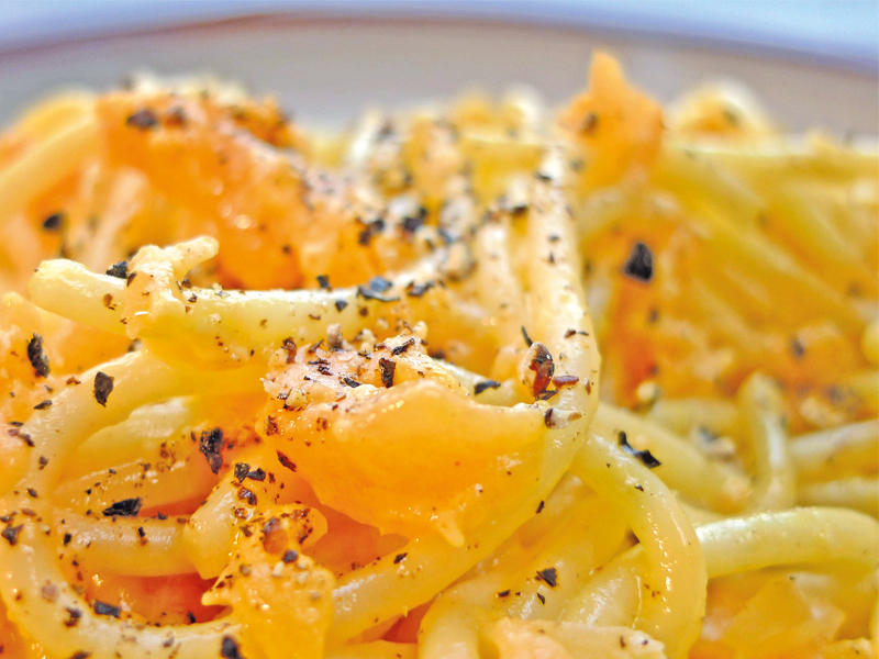 • نصف كيلو سباغيتي.• كوب ونصف من جبنة البارميزان المبروشة• حبة بطيخ أصفر (كيلو) مقشرة ومنزوعة البذور ومقطعة إلى قطع بحجم إنش (حوالى 4 أكواب).• كوب من الكريما المخفوقة الثقيلة.• 4 ملاعق كبيرة (نصف مكعّب) من الزبدة غير المملحة والمقطعة إلى مكعبات بحجم نصف إنش، على حرارة الغرفة.• ملعقتان كبيرتان من عصير الليمون الطازج• ملعقة كبيرة من ملح كوشير وكمية إضافية للتتبيل.• نصف ملعقة صغيرة من الفلفل الأسود المطحون حديثاً وكمية إضافية للتتبيل.الطريقة: