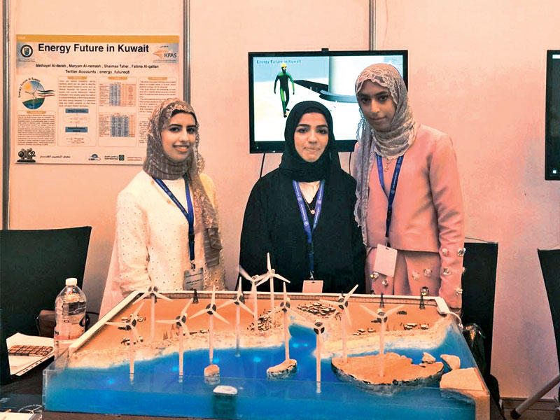 لم تكن هناك صعوبة في إنجاز المشروع الذي حلمت به خريجات قسم الهندسة المدنية بكلية الهندسة والبترول في جامعة الكويت مثايل الدرعة، ومريم النمش، وشيماء طاهر، وفاطمة القطان.ويتمثل المشروع، الذي حاز قبول العديد من الحاضرين في معرض التصميم الهندسي، في مراوح كهربائية تعمل على توليد الطاقة في المحطات الكهربائية الكبيرة، والاستغناء عن الوقود.وعرضت الطالبات دراسة هذا المشروع على 13محطة بحرية في دولة الكويت لبيان مدى سرعة الرياح، وتم عرضه على 3 جهات حكومية في الدولة. وسيتم تصميم قواعد لذلك المشروع في جزيرة فيلكا الكويتية، تتكون من توربينات مثبتة في الجزيرة لتوليد الطاقة وتجديدها يوميا عبر المراوح. واستغرق انجاز المشروع قرابة 3 أشهر.