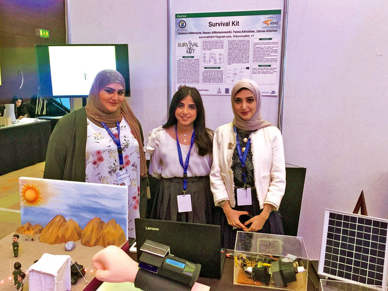 قامت خريجات كلية الهندسة والبترول إيمان الرقبة، وسارة الختلان، والعنود الشمري بتصميم مشروع لتعزيز محطات تحلية المياه في دولة الكويت، وهو من المشاريع الباهظة التكلفة على الدولة، ولكنه آمن الفعالية، إذ يعمل على حماية البيئة البحرية والبرية من جميع مخاطر التلوث التي تهددها. وقالت الخريجات، لـ»الجريدة»، إن مدة إنجاز المشروع كانت 3 أشهر متتالية، أي قرابة فصل دراسي كامل، وحظي المشروع بإعجاب العديد من أعضاء هيئة التدريس في جامعة الكويت لأنه مشروع صديق للبيئة وللمناخ، موضحات أن المشروع الذي يعد من أفضل المشاريع المرافقة للبيئة حظي برعايات مختلفة.حقيبة إنقاذ تعمل بالطاقة الشمسية