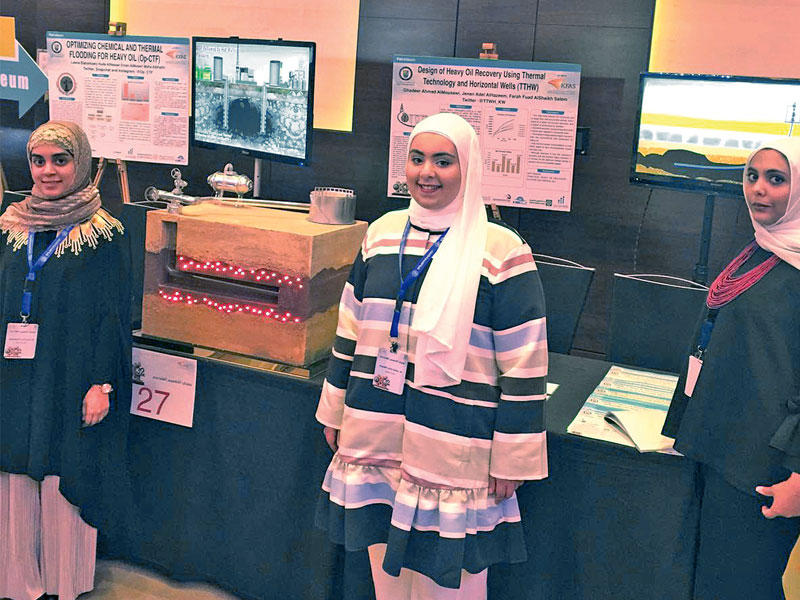 صممت خريجات كلية الهندسة والبترول غدير الموسوي، وفرح الشيخ، وجنان الهزيم، مشروعاً لإنتاج واستخراج النفط الثقيل.وذكرت هؤلاء الخريجات، لـ»الجريدة»، أن المشروع من أحدث المشاريع الحديثة في الدول التي تعتمد على إنتاج النفط وتوريده، لأنه يستخدم تقنية الحرارة الشديدة في تكرار البترول الثقيل، والاستفادة من الكثير من المشتقات النفطية. وأضفن أن هذا المشروع لا يقتصر فقط على تكرار البترول الثقيل بل هو جدير بتخصيب إنتاجية المشتقات البترولية دون اللجوء الى الشركات العالمية، مؤكدات أنه أحد المشاريع التي تحدث نقلة نوعية في الشركات التي تشرف على استخراج النفط وتكريره في الكويت.«تحلية المياه»... بمواصفات صديقة للبيئة