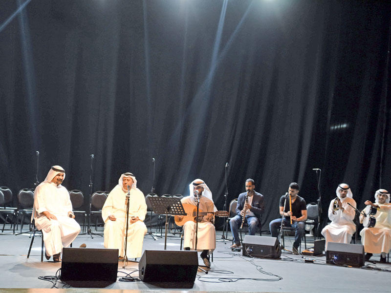 وانتزعت السينما جمهور المسرح إلى غير رجعة، بل إن عددا من أهم المطربين تعرفوا عن طريق السينما، ومنهم محمد فوزي وهدى سلطان وكارم محمود ومحمد قنديل.وكان الخميسي قسم مدارس التأليف الموسيقي الى 3، الأولى مدرسة كلاسيكية قديمة تزعمها محمد عثمان,، ثم كلاسيكية جديدة أمها سيد درويش، ورومانتيكية قادها القصبجي ومحمد عبدالوهاب، ورياض السنباطي، وجدد دماءها محمد الموجي والشريف والطويل.وقال إن الموسيقى المصرية انقسمت بعد سيد درويش، اي بعد 1930، لتيارين مستقلين: الأغنية السينمائية والاغنية خارج السينما، أي الأغنية في المسارح والقاعات الموسيقية.واضاف ان المسرح والسينما كانا الإطارين اللذين جمعا الفنون الاخرى "الفنون السبع الرئيسية" لكل بلاد العالم وبالذات اوروبا، وهي الرقص والموسيقى والشعر والرسم والنحت والعمارة والسينما.وشدد على ان السينما جددت الدماء للموسيقيين بالقوانين الموسيقية الجديدة التي فرضتها، وهي اعتماد الأغنية الراقصة (أي المرتكزة على الإيقاع الراقص)، واتخاذ السرعة النشيطة، واختصار المقدمات والفواصل الآلية، والغاء قوالب الغناء الأربعة: الموال والقصيد والدور والموشح، وإلغاء المعزوفات: التقاسيم والتحميلة.وذكر أن الأغنية السينمائية تطورت على يد عدد من الملحنين الكبار، ومنهم محمد عبدالوهاب، وفيها استبدل التخت الشرقي بفرقة موسيقية كبيرة تضم العديد من الآلات الأوركسترالية، كما أدخل على بعض الأغاني التوزيع "الهارموني". ومن السينما خرجت الموسيقى التصويرية كافتتاحية للفيلم، ومصاحبة لبعض المشاهد الدرامية. واستغل كبار الملحنين السينما في تصغير حجم الأغنية، وتخفيف ألحانها بحيث ترددها الجماهير بلا عناء، كما أدخل الايقاعات الراقصة المأخوذة من الموسيقى الغربية، وبنى عليها بعض أغانيه كي تتماشى مع أحداث الفيلم، وابتعد عن القوالب الغنائية التقليدية باستثناء الموال والقصيدة، إبقاء لهوية الموسيقى العربية.واختتم الخميسي الفقرة الاولى بغناء أغنية عبدالحليم حافظ "توبة" بمصاحبة كورال من اعضاء برنامج "البروتيجيز".وقدم العازف والمغني الكويتي مشعل الحسين اغنتين في فقرته الثانية عن تطور الاغنية الكويتية هما "على خدي احط ايدي"، الحان وغناء عبدالله فضالة، وكلمات عبدالمحسن الرفاعي، والتي قالت:على خدي احط ايدي واحاسب روحي بروحيواقول بيدي جرحت ايدي وزدت جروحي بنوحيأما الاغنية الثانية فكانت "الا يا اهل الهوى" من الحان عبدالله الفضالة ايضا وتقول كلماتها:الا يا اهل الهوى واعزتاليعديل الروح مكن بي صوابهوقال مشعل حسين ان عملية تطوير الألحان التراثية الكويتية من أجل الوصول بها الى العالمية هو شغله الشاغل منذ 3 سنوات، واعطاه تقبل الناس للفكرة دافعا وحافزا للاستمرار في أداء مهمته التي يعتبرها رسالته، لاسيما ان الموسيقى الشرقية شهدت تطورا كبيرا خلال السنوات الماضية، بسبب تأثر بعض الملحنين بتراث الغرب الموسيقي من جهة، وبشكل من أشكال العولمة التي وفرت تقنيات حديثة من دون شك تخدم عملية التطوير، من جهة أخرى.وأضاف أن الهدف من إعادة توزيع موسيقى التراث الكويتي أو الأغاني القديمة الشائعة، من خلال مزج الإيقاعات أو إدخال التكنو والبوب، هو الوصول بها للعالمية، "فالمستمع الغربي معتاد على موسيقى بلاده أو قارته، وحين تندمج مع ألحان من بلد آخر يفهمها بشكل أسرع، لأنك استخدمت موسيقى ثقافته لإيصال فكرتك، وهو المطلوب لنشر جماليات موسيقى تراثنا الكويتي الأصيل ذي النكهة المميزة من حيث التراكيب البنائية والنغمات المختلفة من قادري وسامري وغيرها".وقدم الملحن الكبير سليمان الملا في الفقرة الثالثة الاخيرة 5 اغان هي "اي معزه" و"كشفوا سر الهوى" و"نبع الهوى الصافي" و"انا لم اخنك حبيبي" و"فدوة لك".